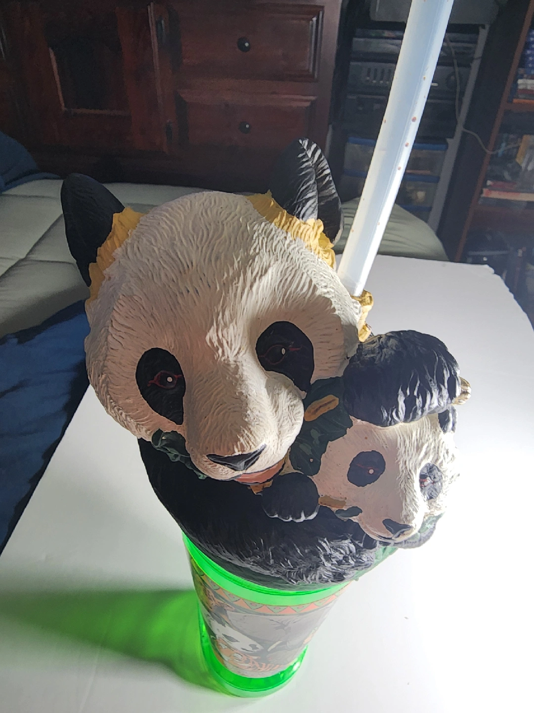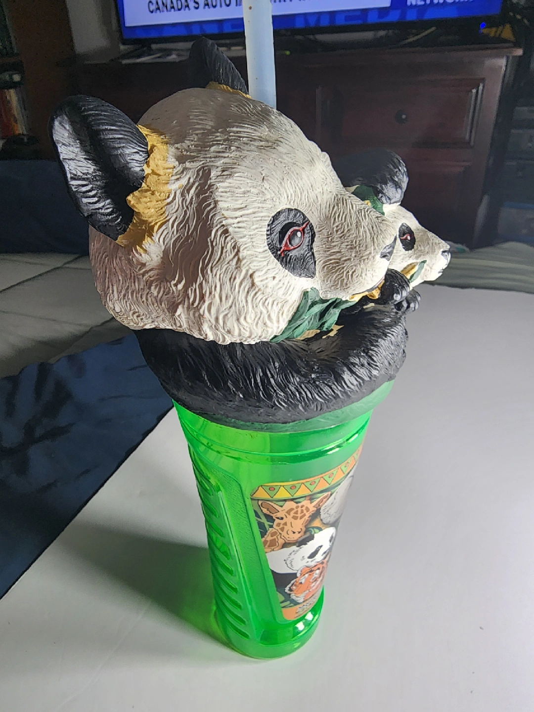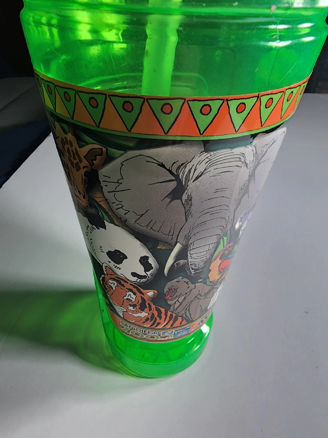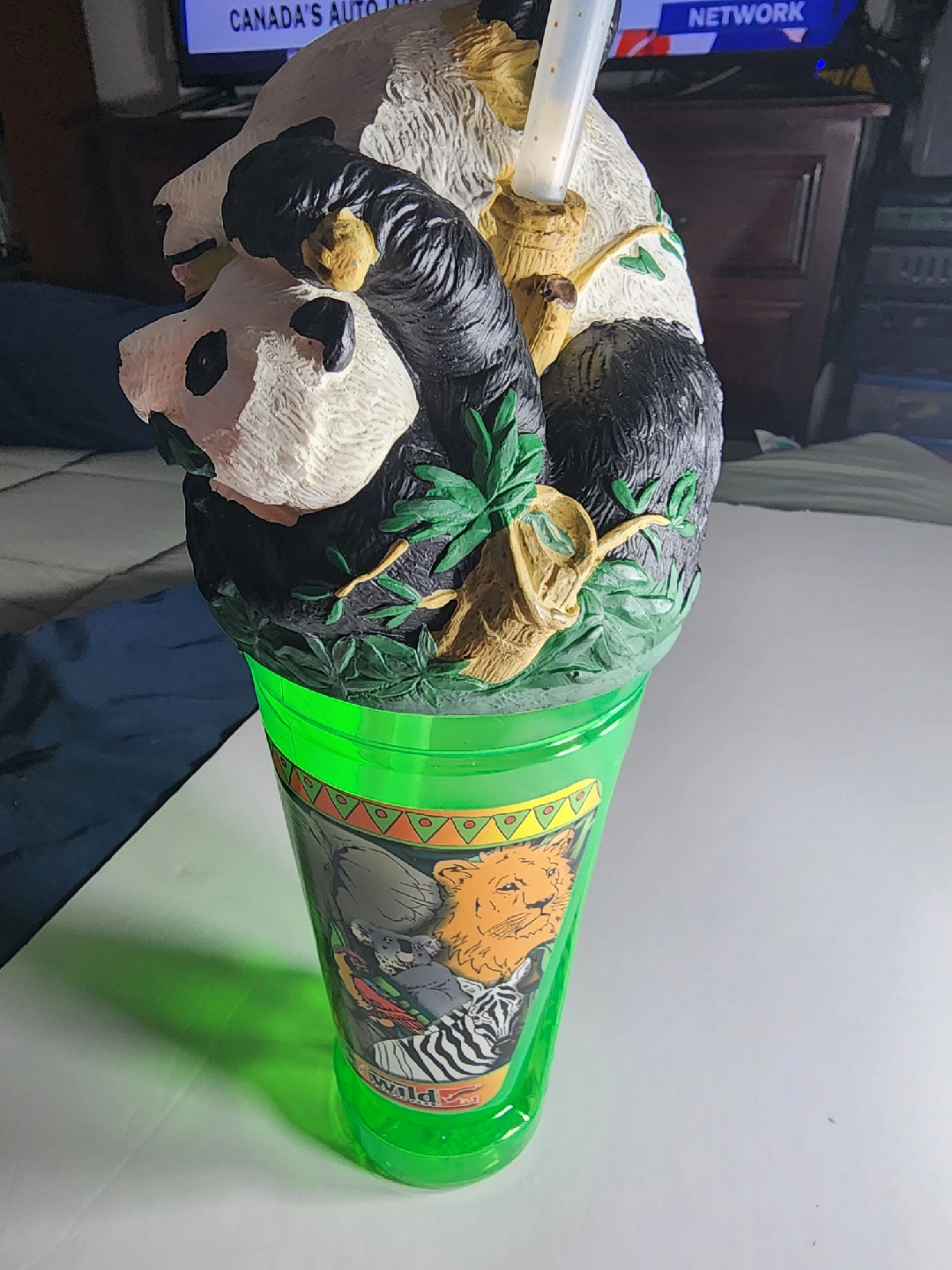 129Here's a fun souvenir cup from the San Diego Zoo! It features a cool panda design on top and a colourful animal print around the cup. Comes with a straw, perfect for staying hydrated in style!