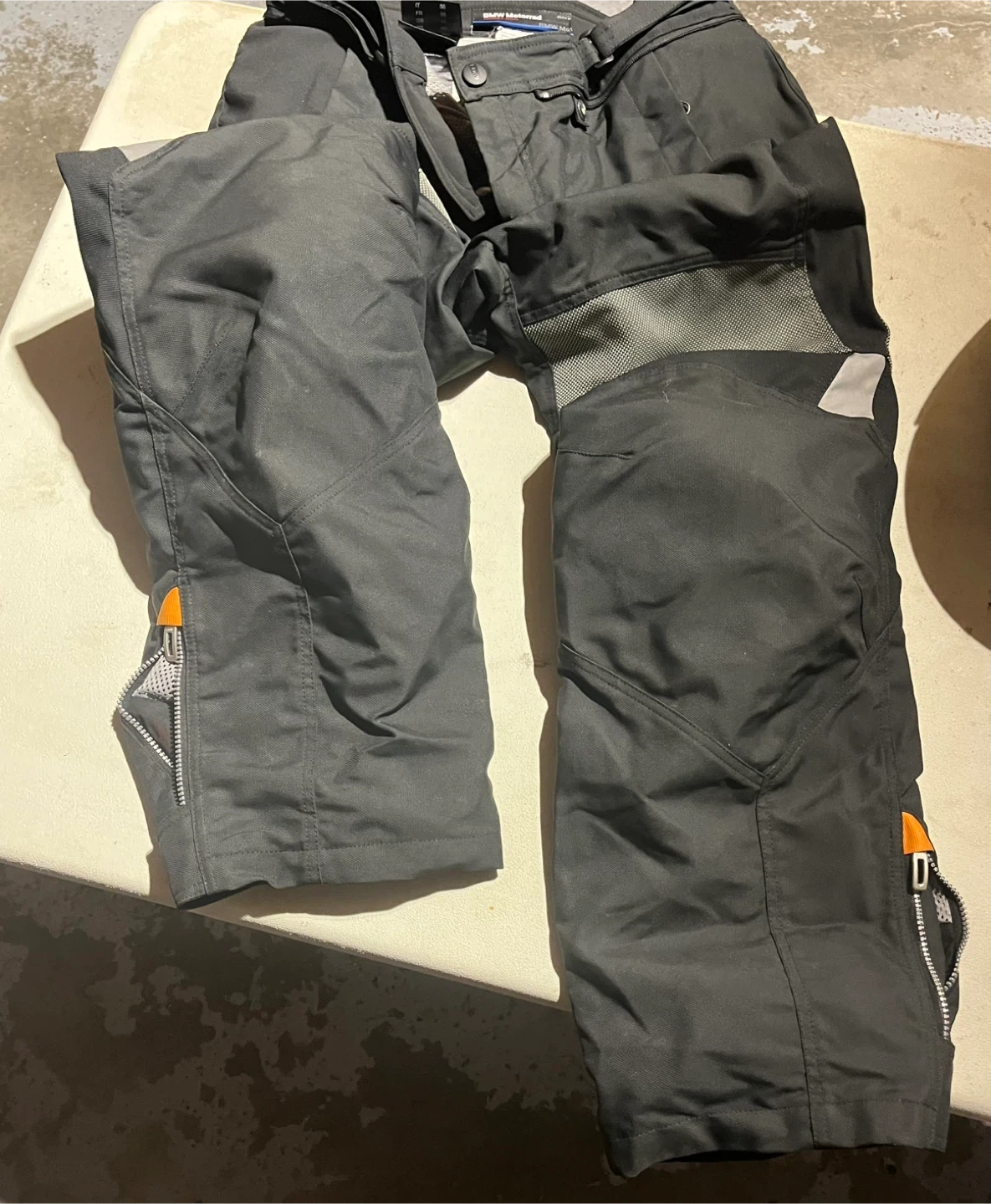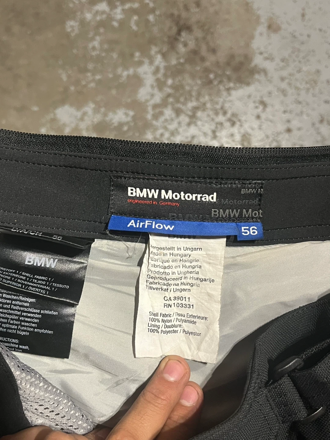 Selling a pair of BMW Motorrad AirFlow motorcycle pants in size 56. They are black and made of a mix of polyamide and polyester. Great for riding!