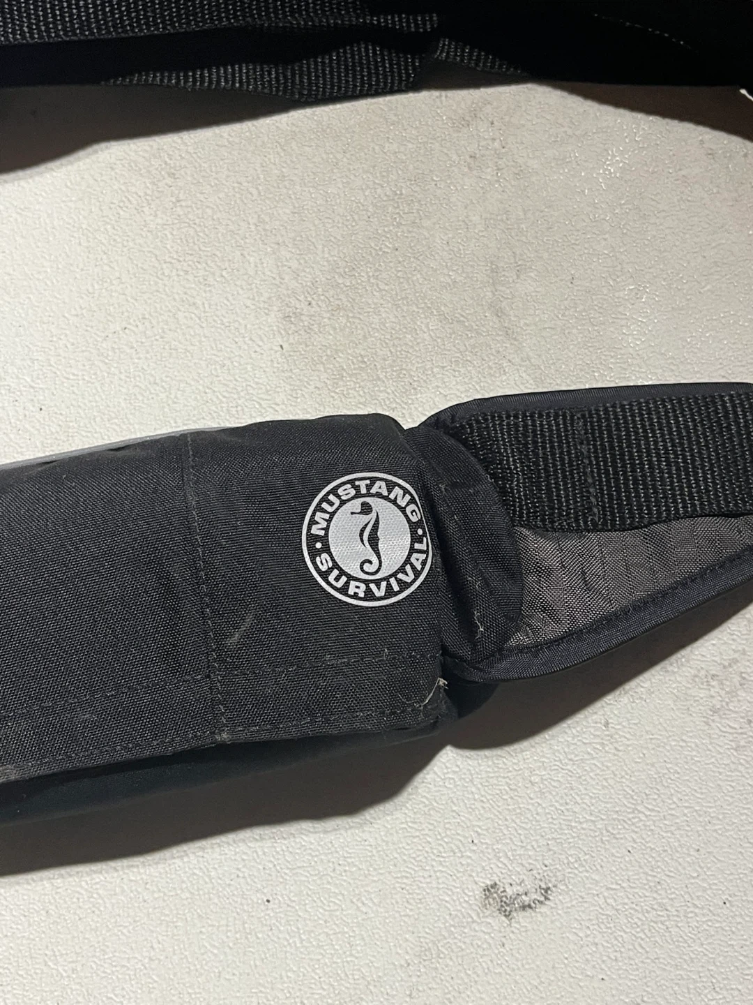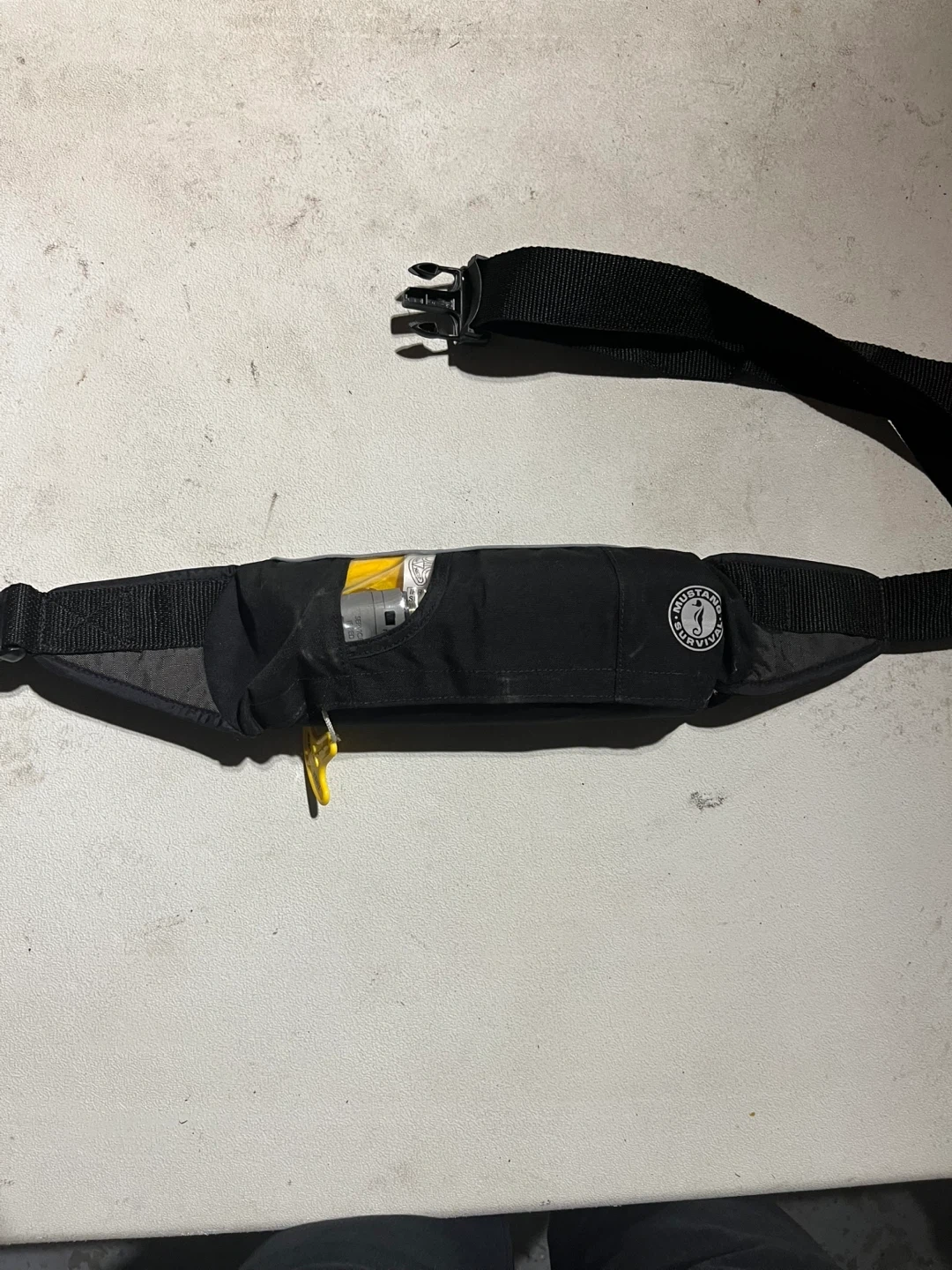 Selling a Mustang Survival Inflatable PFD Belt Pack, model MD3071. It's an adult universal size, suitable for a body mass greater than 36.3 kg. This personal flotation device is in good condition and ready for your next water adventure
