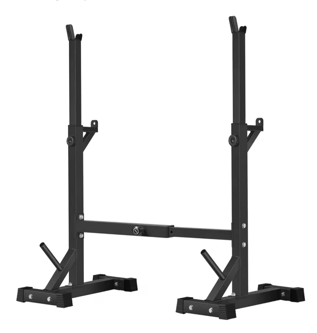 Selling a sturdy, adjustable squat rack in black. Perfect for setting up a home gym. It's in great condition and ready for a new home!