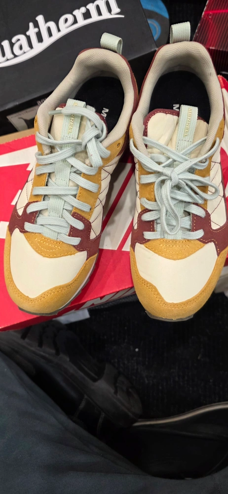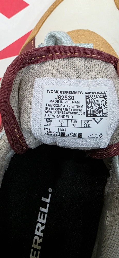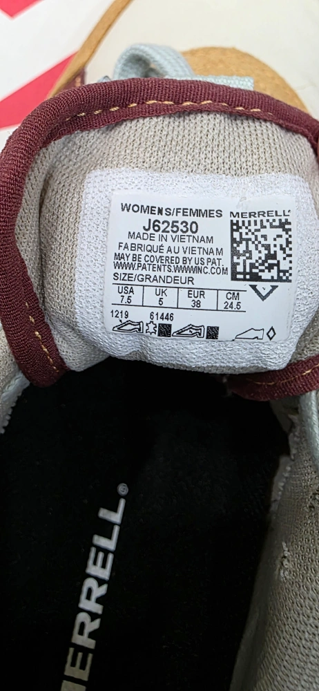 Selling a pair of Merrell women's sneakers, model J62530. They are a size 7.5 US. The shoes come with the box. Great for everyday wear!