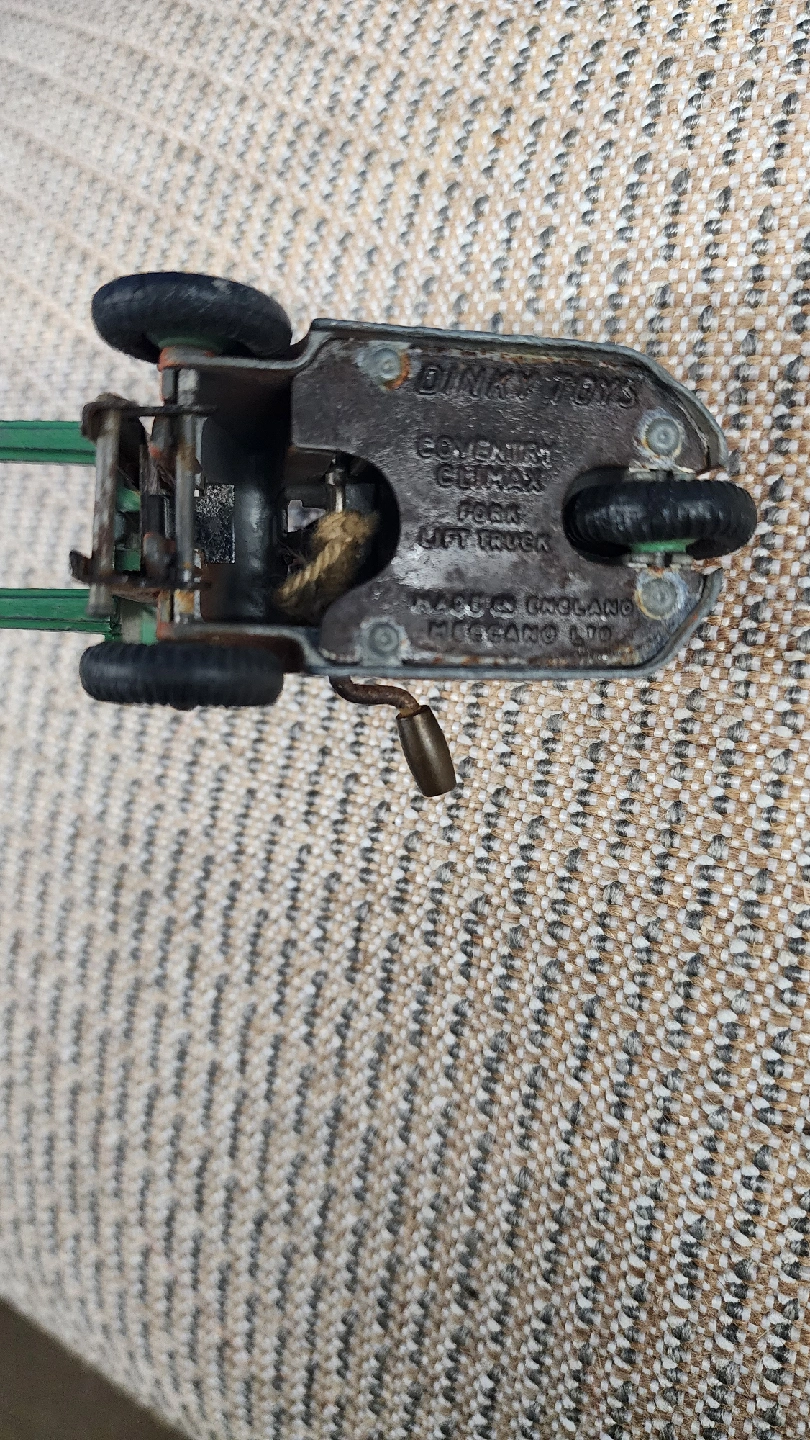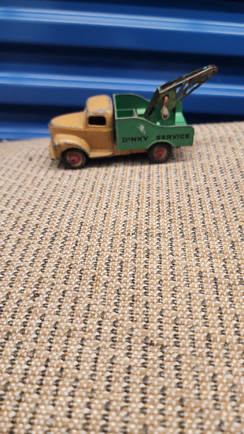 67Vintage Dinky Toys service truck in good condition for its age. It has a yellow cab and green back. Made in England.