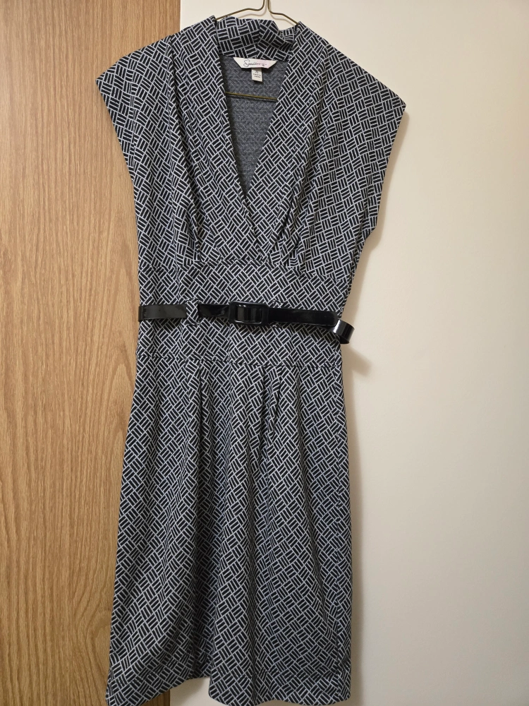 Selling a cute black and white dress from Speechless! It's a size small and comes with a stylish black belt. Perfect for a casual or dressy occasion!