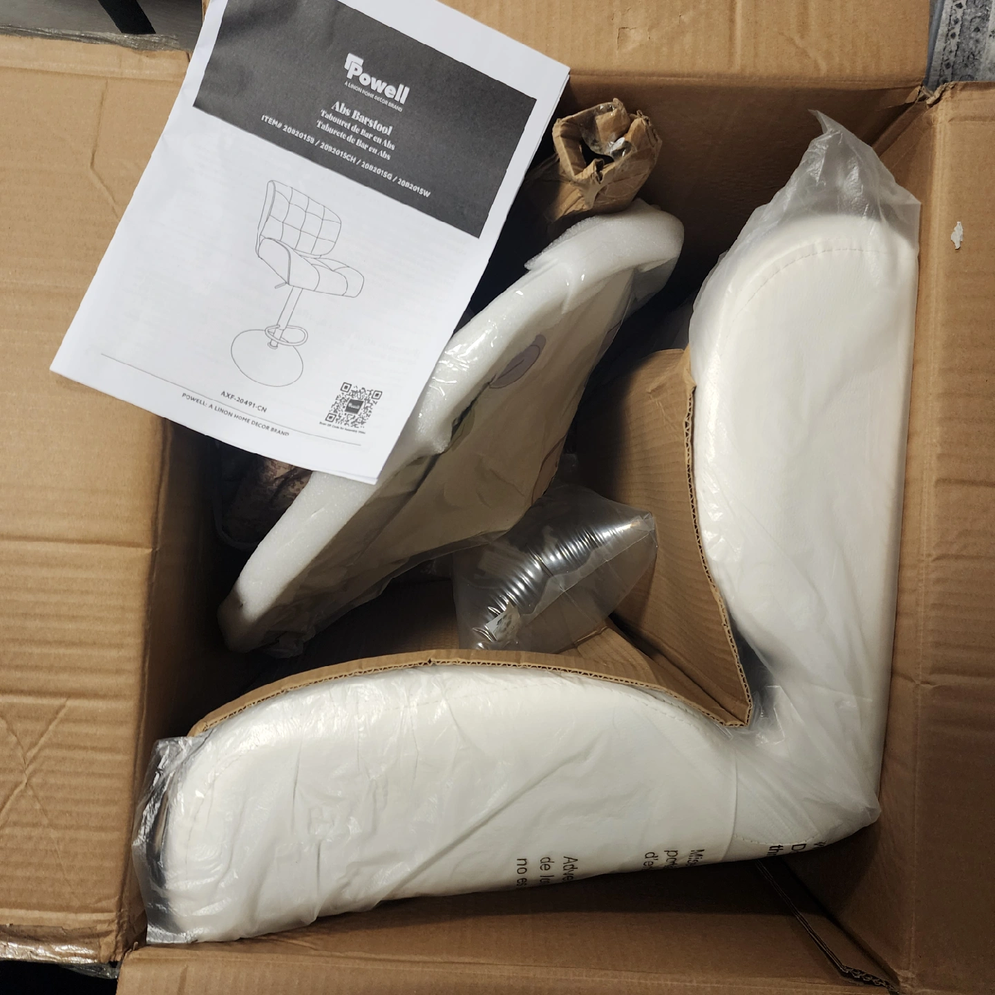 Selling a brand new Powell Home Abu Barstool in white! It's still in the box and ready for your home. The seat height is perfect for counters, ranging from 35" to 39" high. Originally bought for $195.08