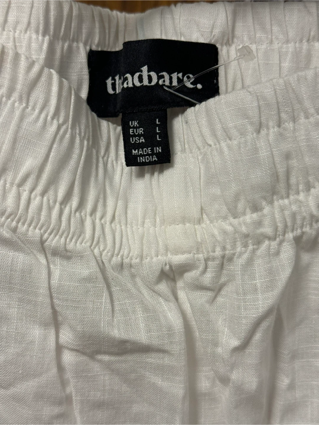 Selling a pair of new Threadbare white pants in size large. Made of 100% cotton, so they're breathable and easy to care for.