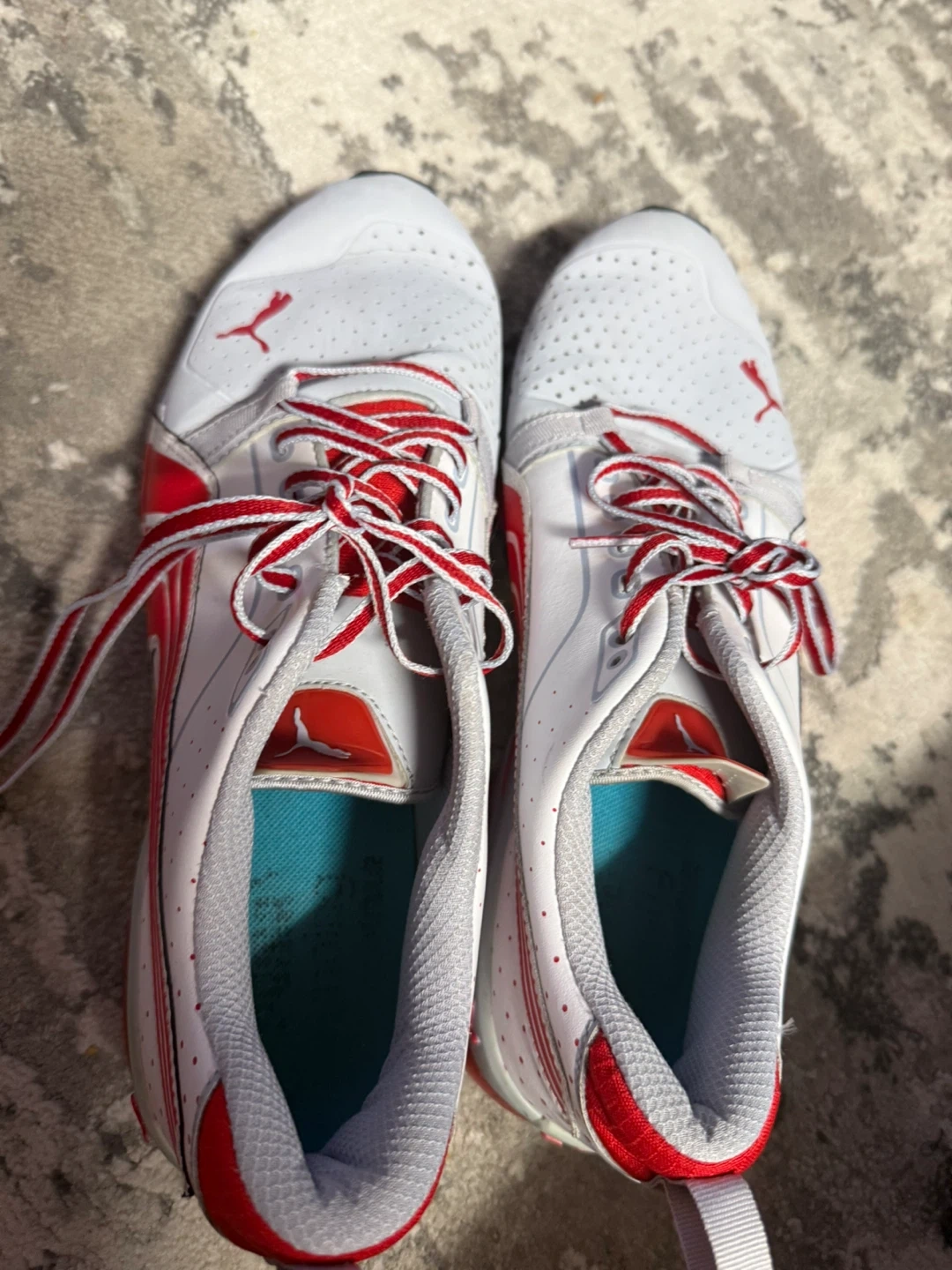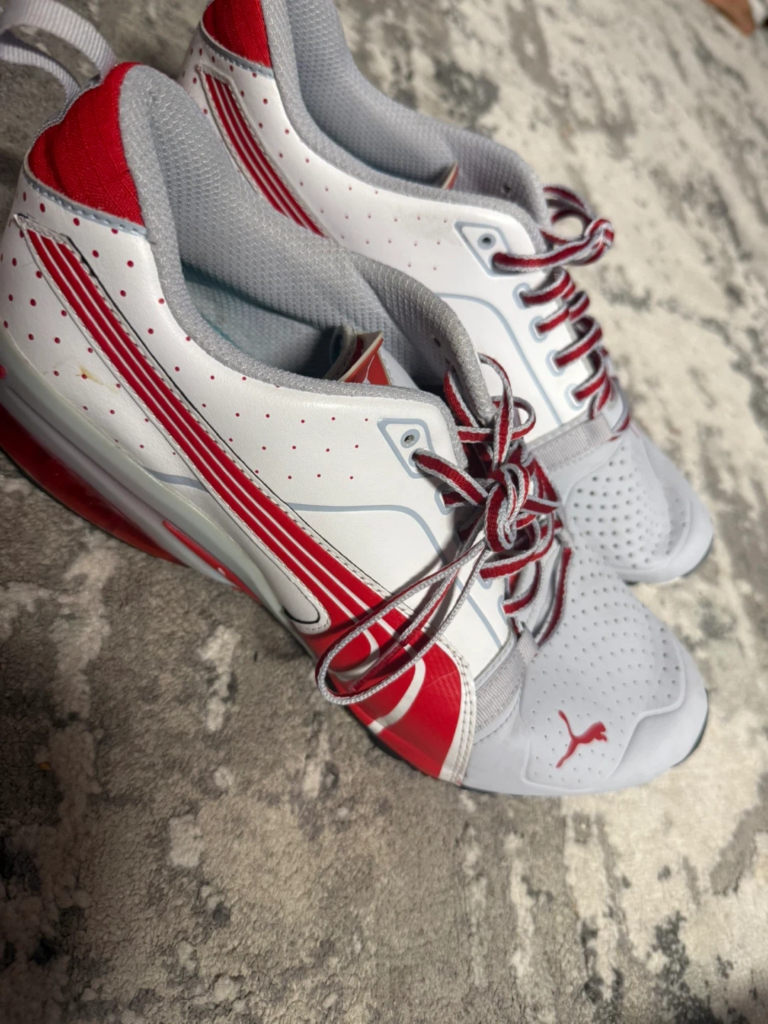 Selling a pair of Puma Cell Meio sneakers in a stylish white and red colourway! These are in great shape and ready for a new home. They are a size US 10