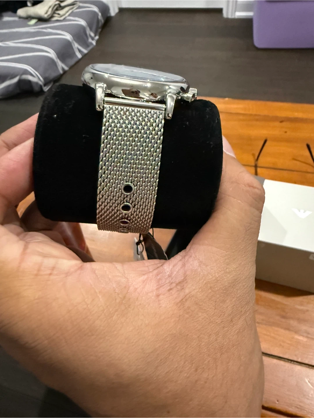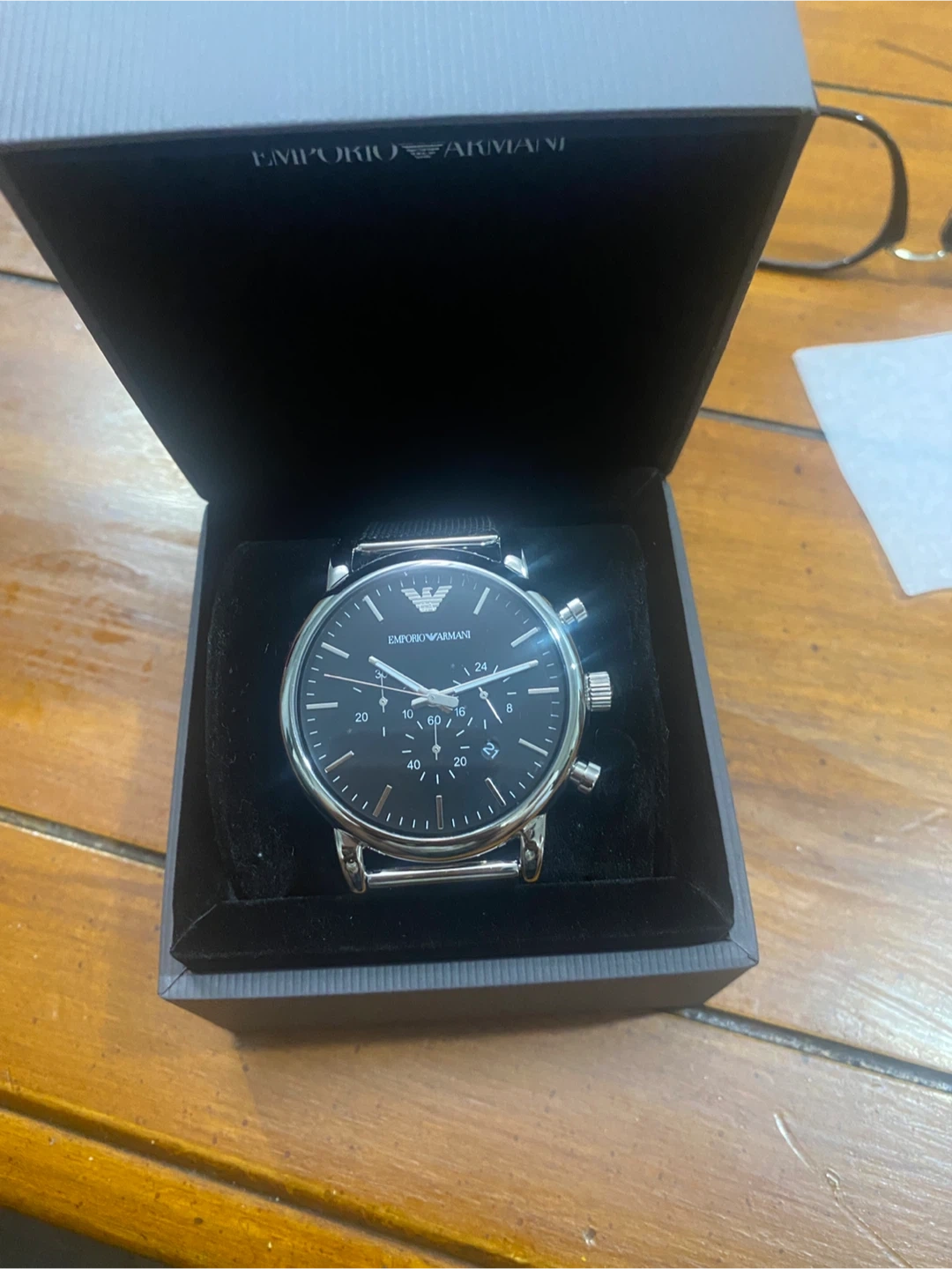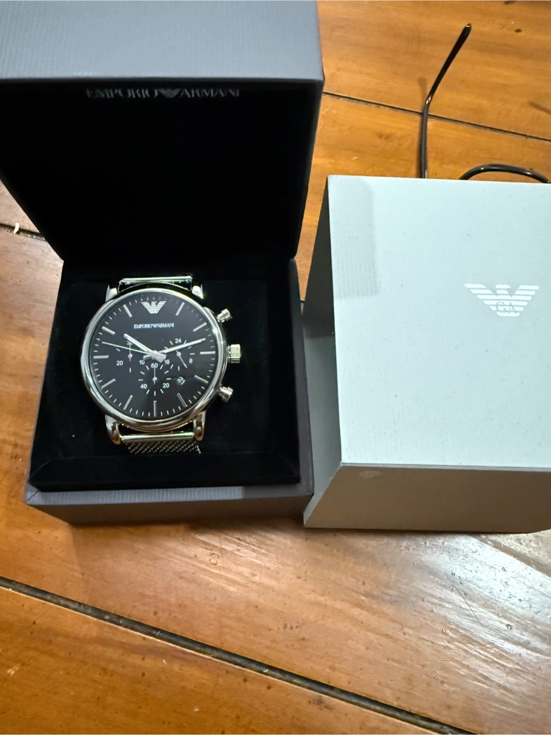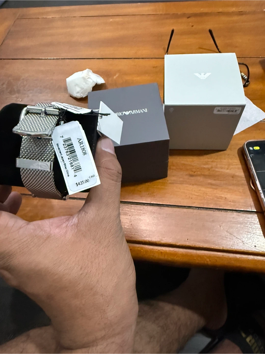 26Selling a brand new Emporio Armani AR1808 men's watch, still in its original box! This stylish watch features a sleek design and is perfect for any occasion. The original price tag shows $425 CAD. Comes with all original packaging and materials