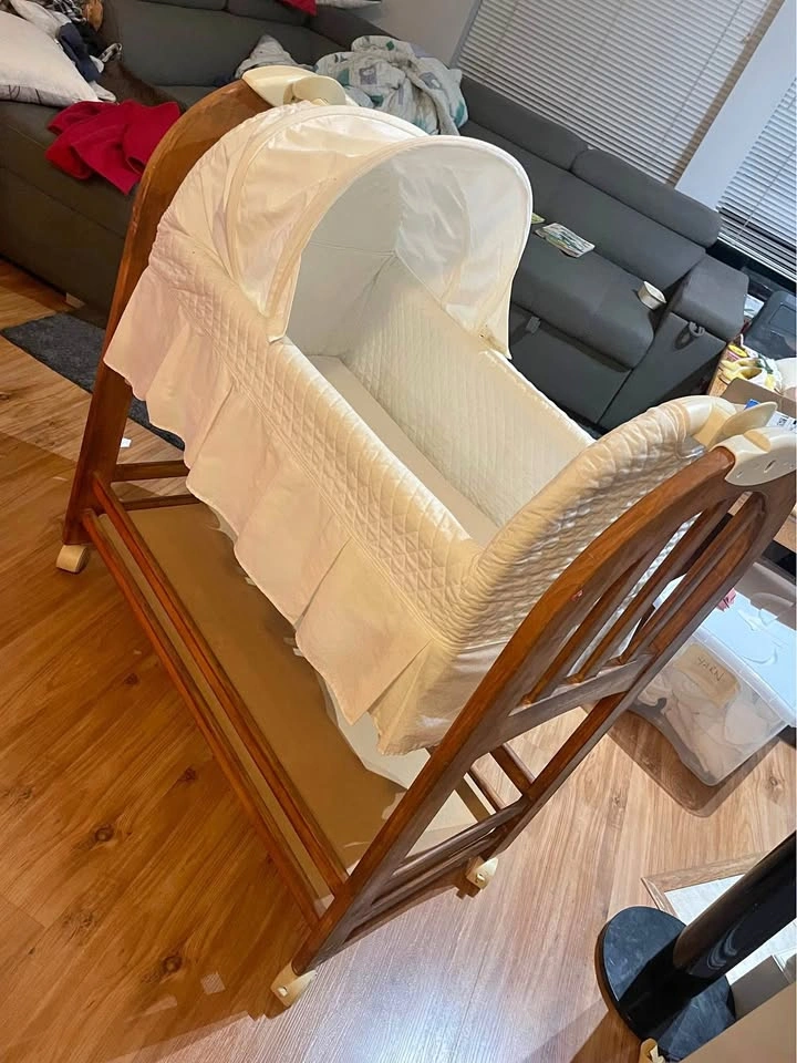 65Swinging bassinet to help rock your baby to sleep. Has locking wheels so you can move the bassinet to where you need to go.