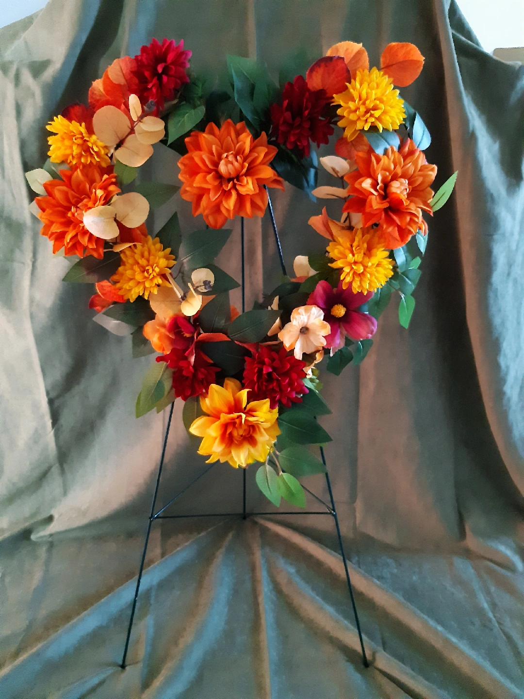 This is a beautiful floral wreath for the door of your home or will also look perfect at the cemetery