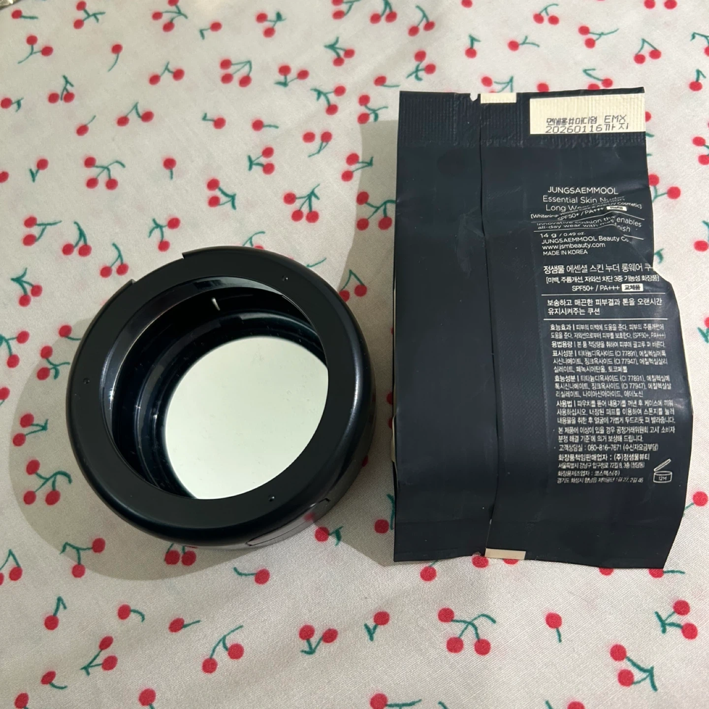 Selling a Jung Saem Mool Essential Skin Nuder Long Wear Cushion. It has SPF50+ PA+++ for sun protection. It's designed to give your skin a smooth and even look for long-lasting wear. Expiry date is 2026 June 16.