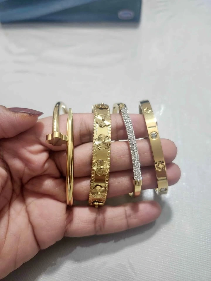 Elevate your style with this stunning 4-piece gold stainless steel bracelet set, designed for women who love elegant, trendy, and versatile jewelry.