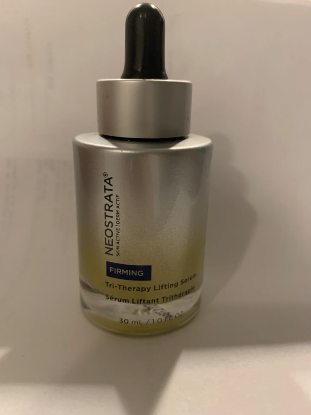 30Selling a NEOSTRATA Firming Tri-Therapy Lifting Serum. This serum is designed to improve skin texture, reduce fine lines and wrinkles, and provide a more lifted appearance. Apply 3 to 5 drops on cleansed skin, followed by a moisturizer