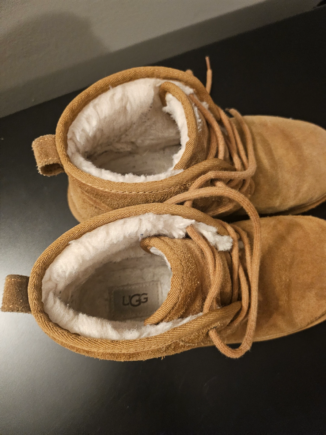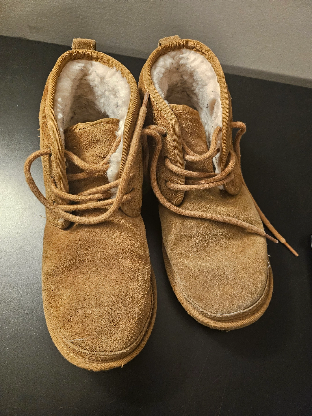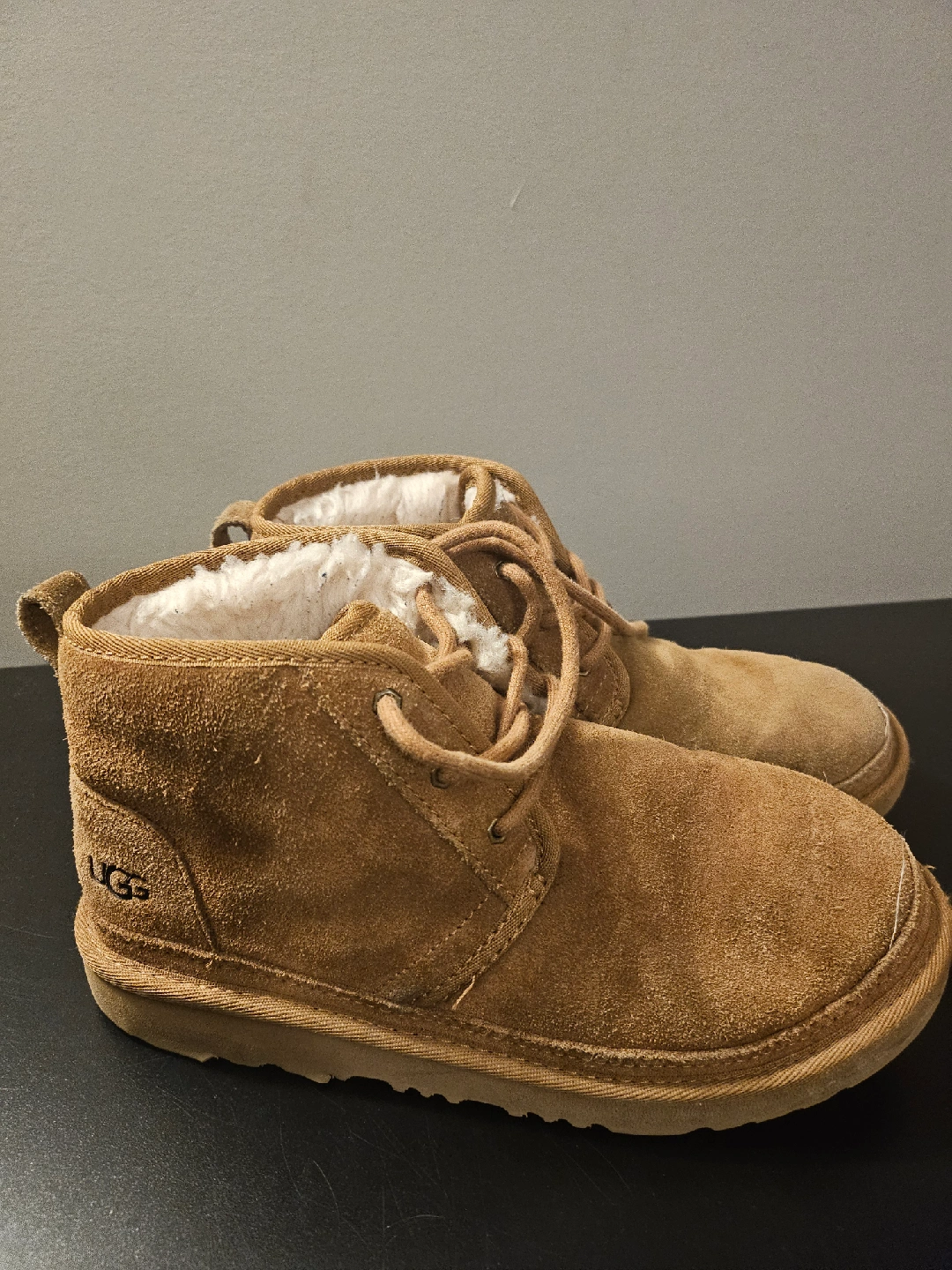 Selling a pair of UGG boots in a neutral tan colour! They're made of soft suede and have cozy lining. Perfect for fall and winter!