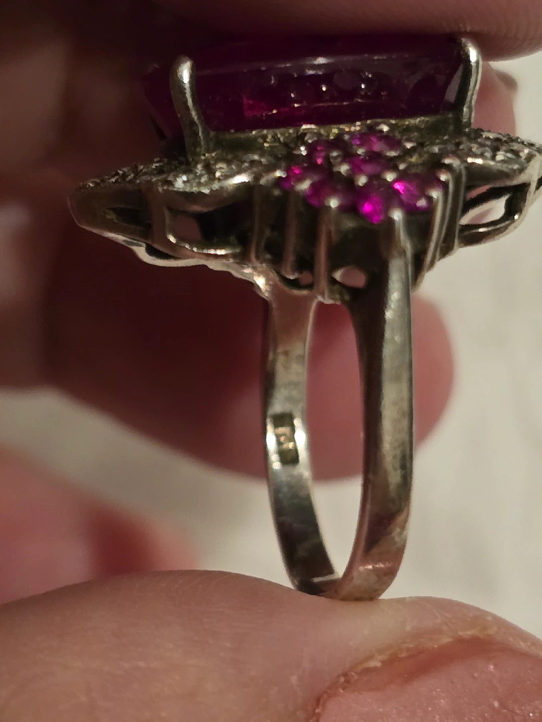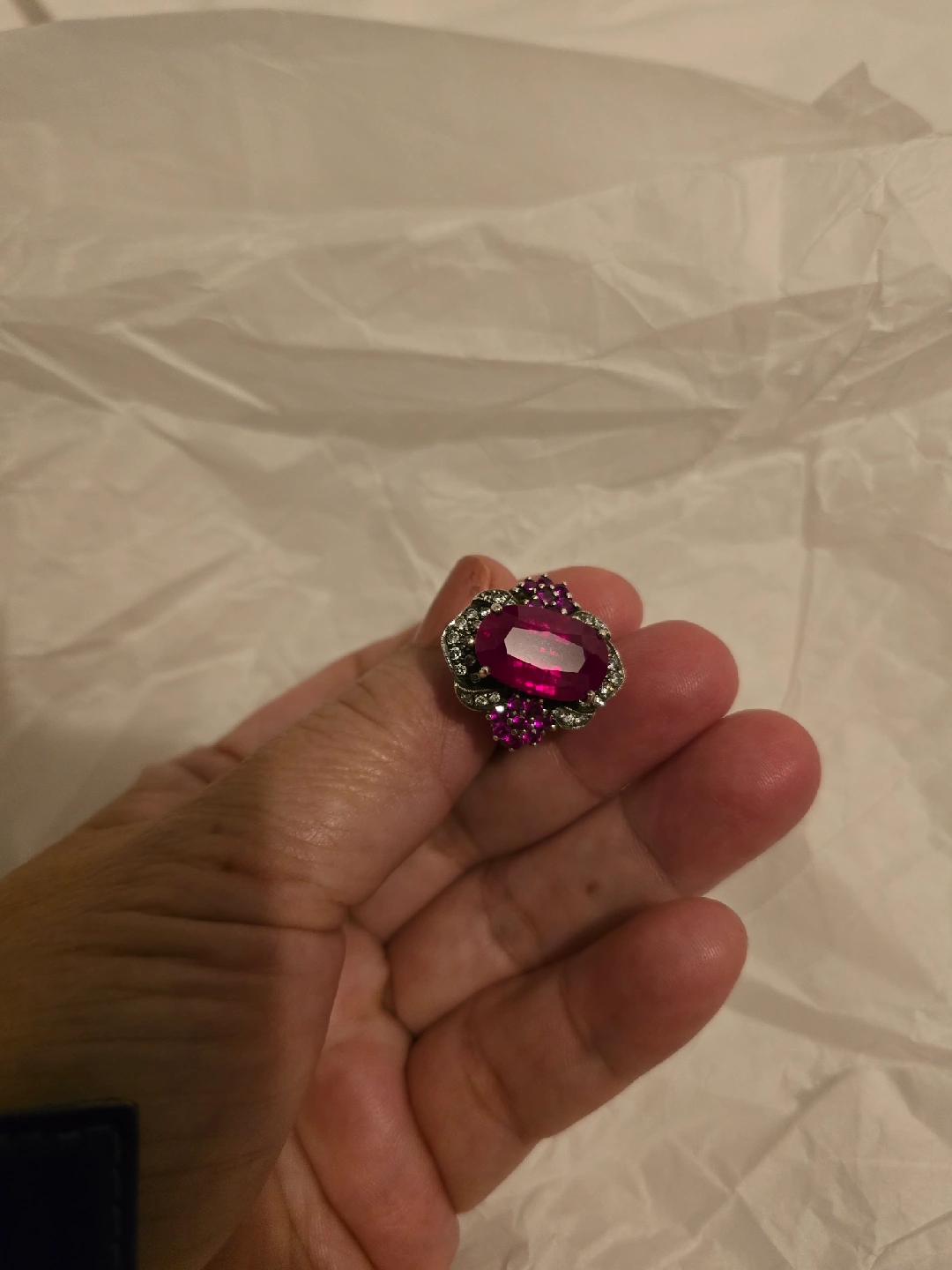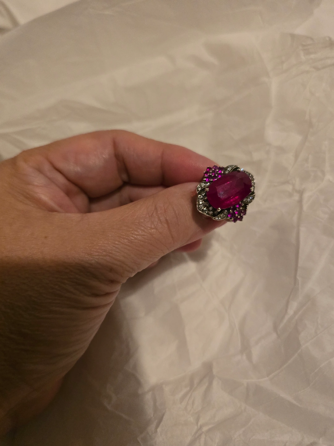 762Beautiful Glass ruby and sterling silver ring for sale! It features a large ruby stone surrounded by smaller crystal rubies and clear stones. The ring is in good condition and ready to be worn! I'm culling my stashes of fancy jewelries as my stay at home life needed more meds than blings to show. This is my prettiest ring ever and probably the prettiest you'll ever see in Ruby SS designed ring. You can ask for more than the suggested 280...just dm me. Not taking less than 280. please take it as Beautifully cut Glass , not natural Ruby although I bought it as lab ruby but no certificate so just take it as a lovely cut glass. The price is Firm. I have it for 25 years now bought from a wholesaler of gemstones and jewelry based in Thailand. 📌M1R1S1 beside Esso 📌 Can send in mail 📌Firm No Haggling at meet up. Let's be classy 👌 📌Pick up at Victoria Park Avenue and Surrey Esso ...easy coming by car, walk or bus 📌Cash bills 📌please get out of your car for a smooth, safe and lovely transaction / meet-up. 🚗👍 🥰 Kindly check my profile and my pretty listings of souvenirs and goodies》》》 that's mostly ready for Gifting .Think of occasions and Christmas holidays for a unique gift. Thanks!