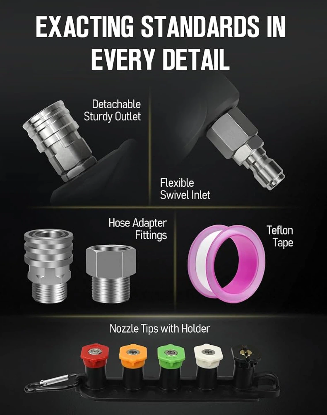 38Selling a LidoDola 5000 PSI Pressure Washer Gun with Swivel! It's a high power washer gun with a 3/8" male plug. It also features 5 nozzle tips, 3 selectable lengths, and an ergonomic grip for car, driveway, and industrial cleaning. The original price was $135.53. It's compatible with high-pressure hoses of 3 different connectors.