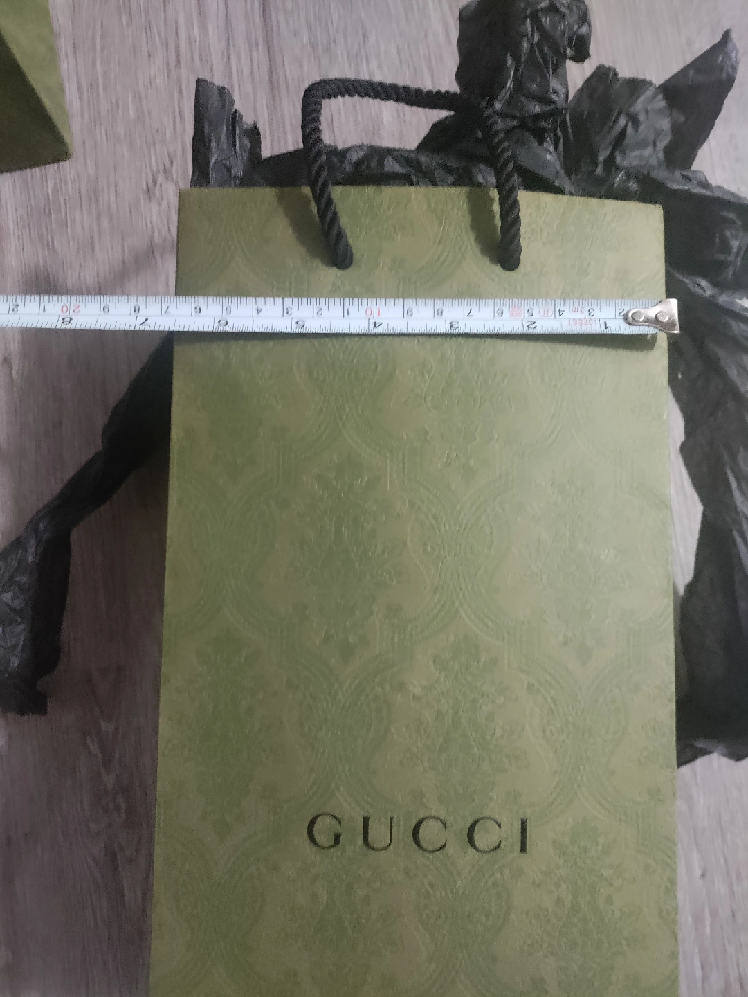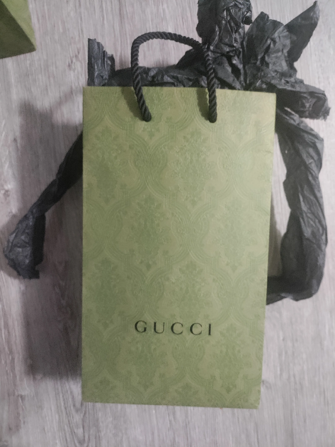 Selling a Gucci green embossed small paper shopping gift bag! It's in great condition.
