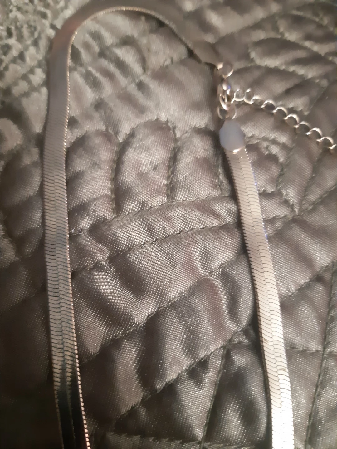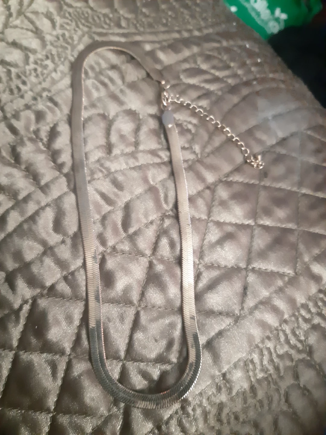 14Selling a stylish silver herringbone chain necklace. It's in great condition and ready to add a touch of elegance to any outfit