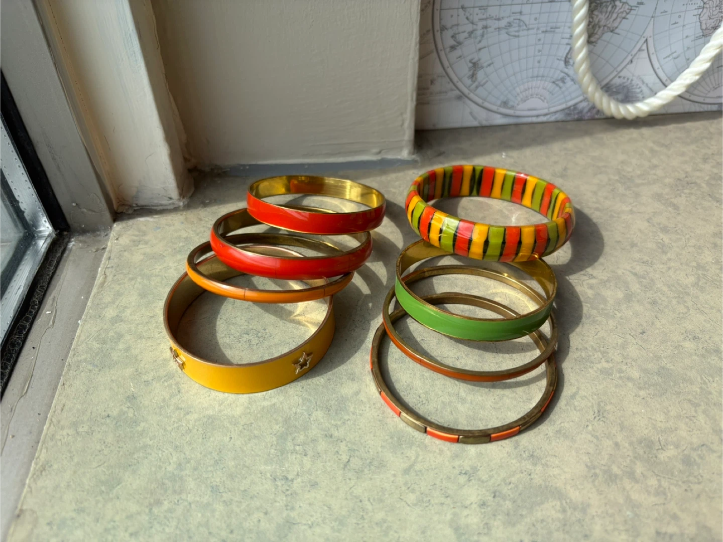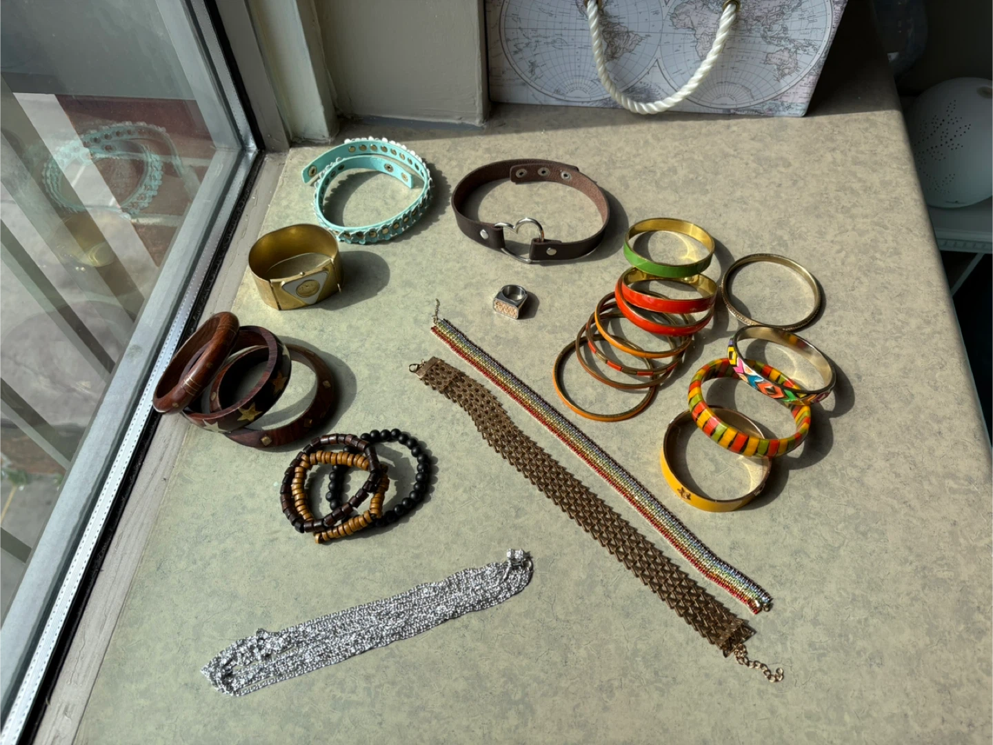 A collection of assorted vintage bracelets and necklaces! Different styles and colours, perfect for accessorizing any outfit. Includes bangles, beaded bracelets, and choker-style necklaces. $20 for the lot