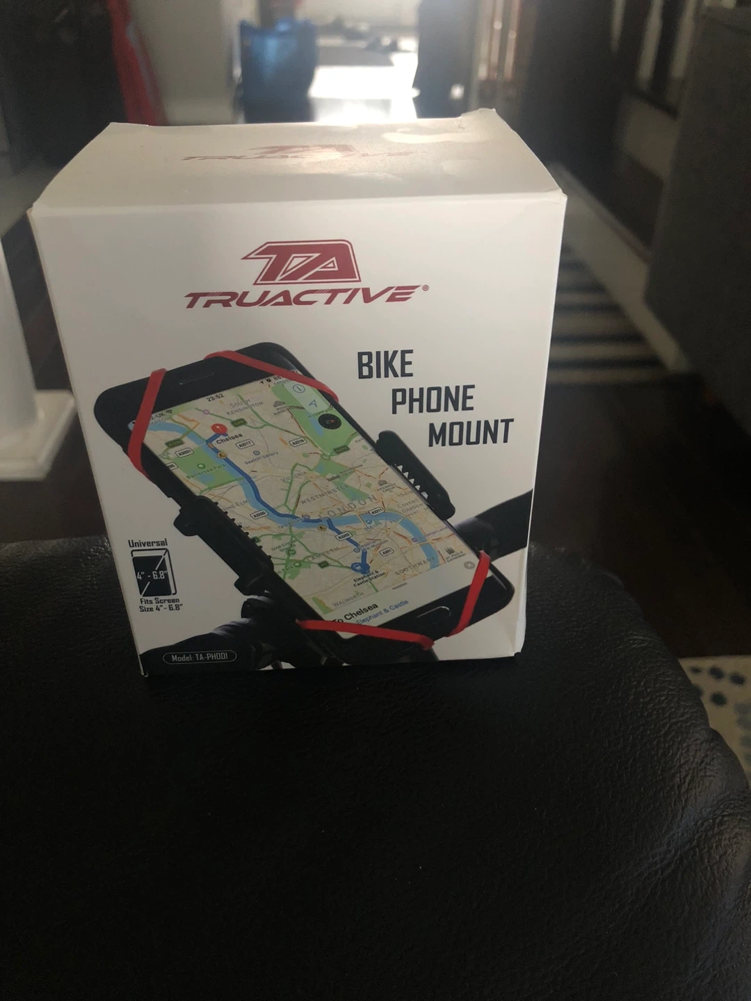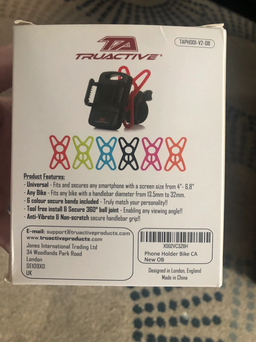 Selling a brand new Truactive bike phone holder, still in its original box! It's designed to fit any bike with a handlebar diameter from 13.5mm to 32mm and secures any smartphone with a screen size from 4" to 6.8". Includes 6 colour secure bands to match your personality! It is tool-free to install and has a secure 360° ball joint for easy viewing. Anti-vibrate and non-scratch to keep your handlebar secure