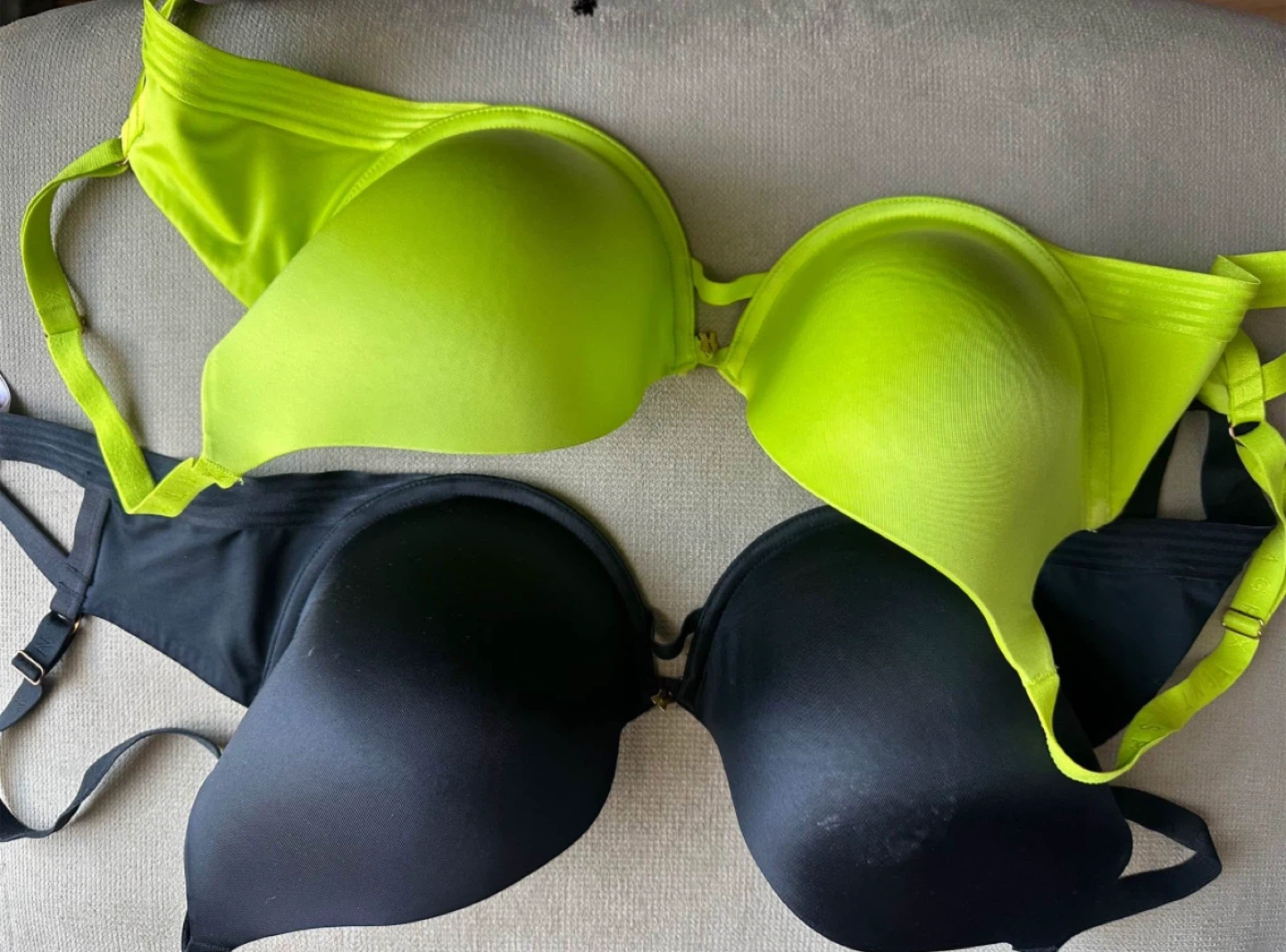 Two bras for sale! One is a vibrant neon green and the other is classic black.