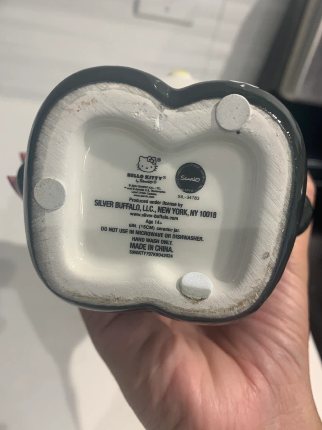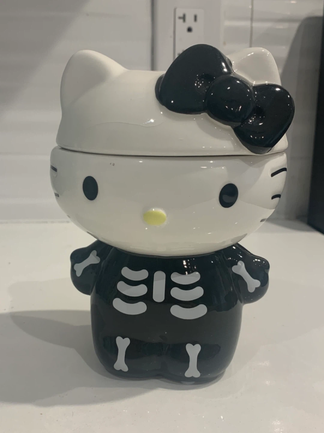 496Selling a cute Hello Kitty ceramic jar! It features Hello Kitty dressed as a skeleton. It's produced under license by Silver Buffalo, LLC. It's a 15 cm ceramic jar. Please hand wash, do not use in microwave or dishwasher