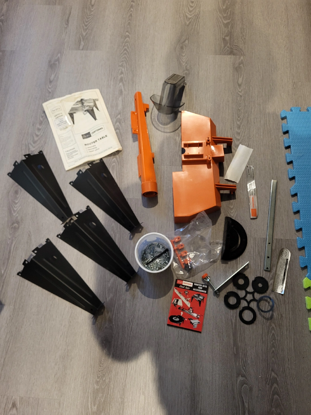 193Selling parts of a Craftsman Deluxe Router Table, model number 171.25443. It comes with the box and all the components you see in the pictures, including the Sears owner's manual. The actual top is not included. Great for assembly, operating, and repair parts!