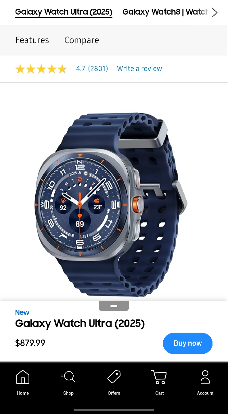 Selling a Samsung Galaxy Watch Ultra 2025 Titanium Blue. Minimal use. Found it too bulky for my wrist and couldn't return it.