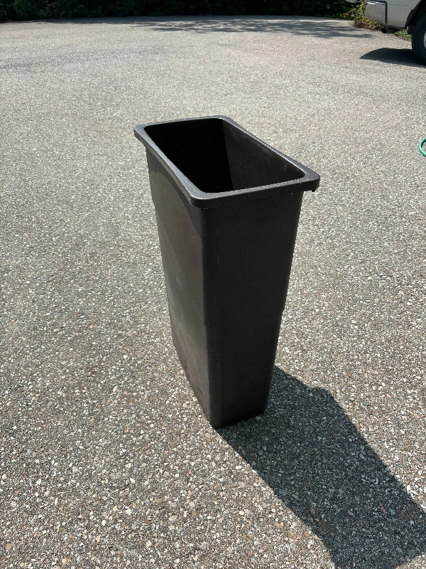 This slim garbage bin (no lid) fits most places. Measures 30 H, 20 L, 11 W. I have 3 available - price is for each can. Pickup near Guelph Line and 401.