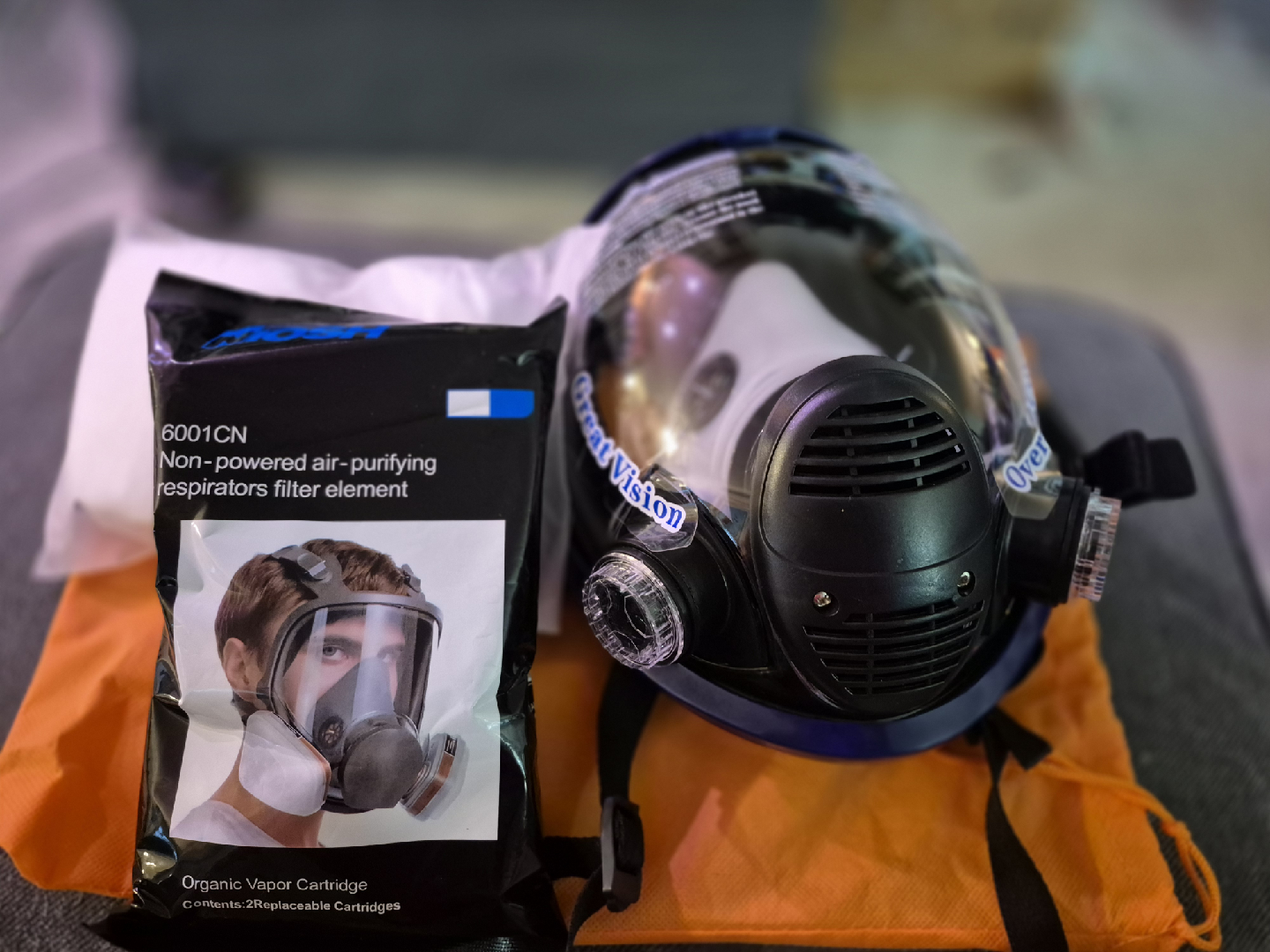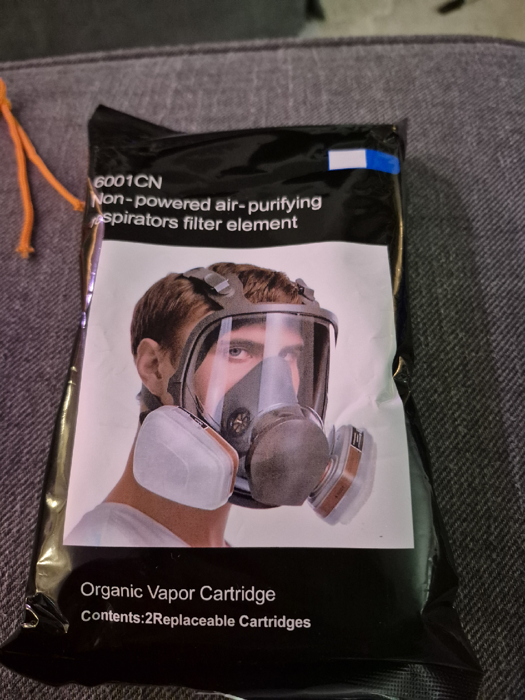 Selling a new full face respirator mask. It comes with 6001CN non-powered air-purifying respirators filter elements, which are organic vapor cartridges. Contains 2 replaceable cartridges.
