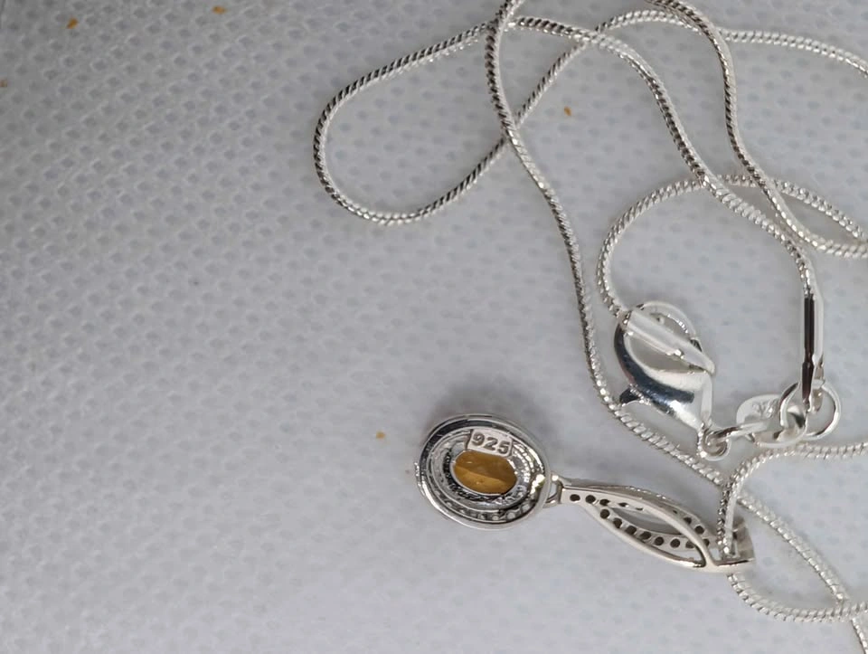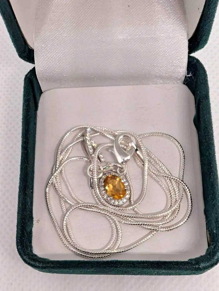 Beautiful Unheated Genuine Citrine pendant - bought at auction per photos - on 925 Silver 18" chain