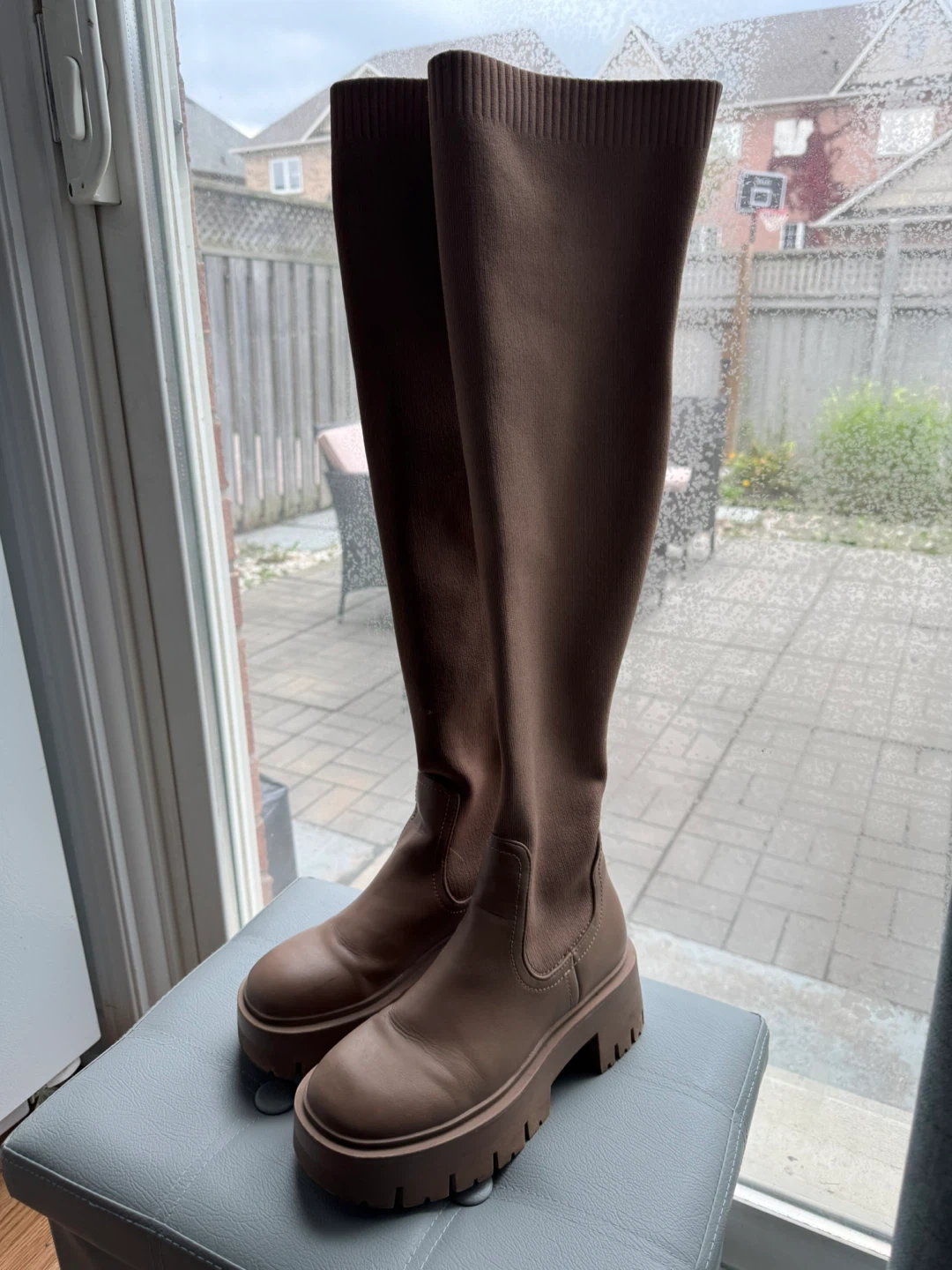 27Selling a pair of Call It Spring over-the-knee boots! They're a size 6 and have a stylish, chunky platform sole. These boots are perfect for adding a bit of edge to your outfit!