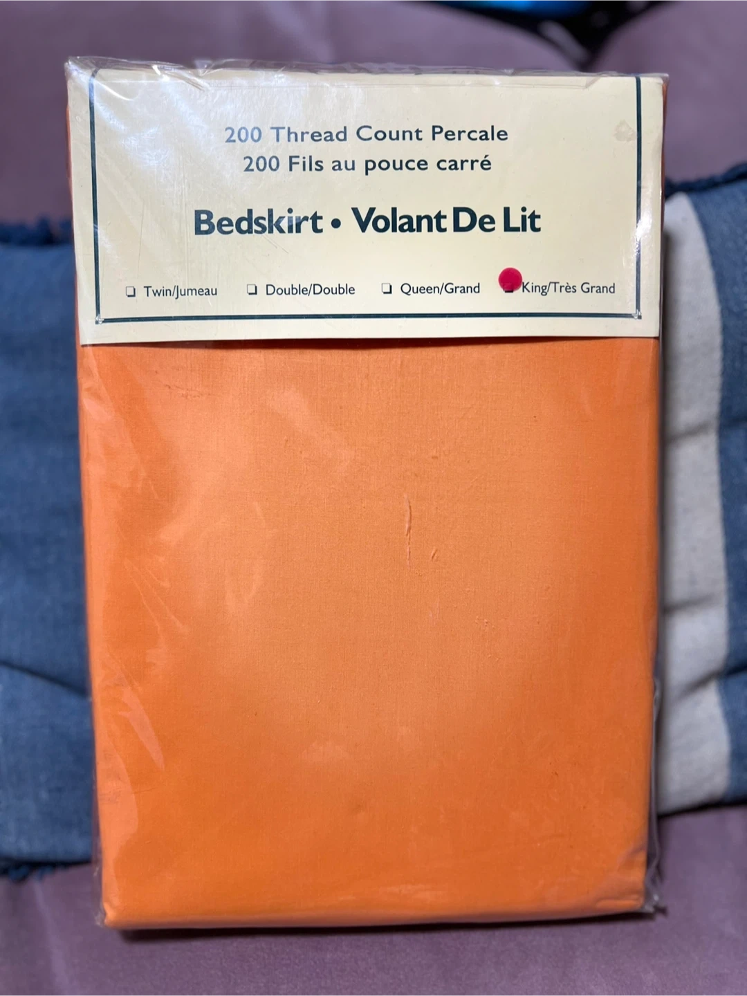 Selling a brand new, still in the original packaging, Highland Feather bedskirt! It's a king size, with a 35cm (14") drop. The material is 50% combed cotton and 50% polyester, with a 200 thread count percale. Originally bought for $44.99!