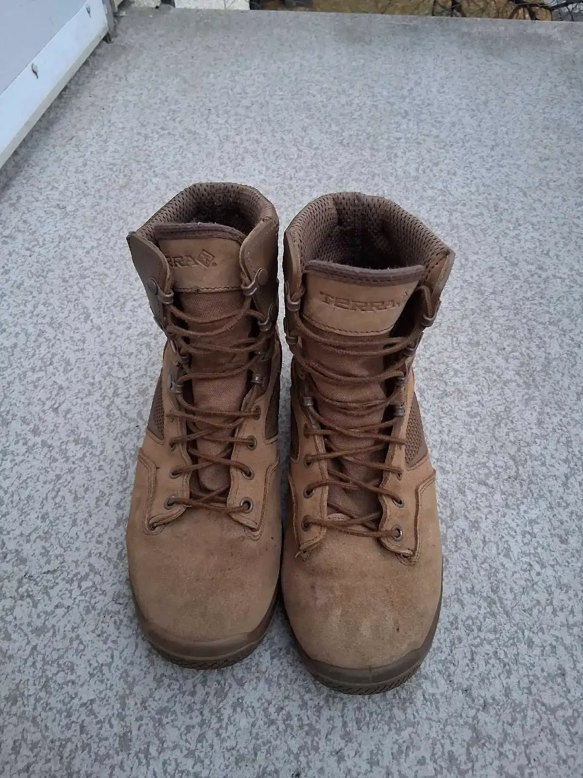 26Offering a pair of Terra tactical boots, built with a focus on durability and comfort for demanding environments. These boots feature robust construction, offering reliable support and protection. Specifications: * Brand: Terra * Type: Tactical Boots * Made in Canada * Oil and Acid Resistant Looking for a sole-mate? These boots are ready to step up!