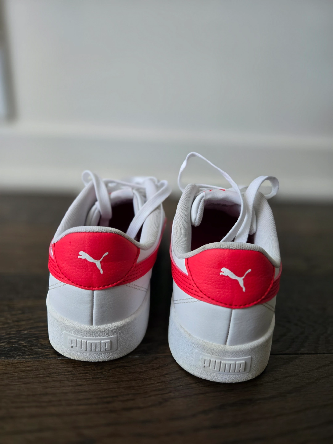 Selling a pair of Puma Rebound Layup Lo sneakers in white with red accents! These are in great shape and ready for a new home. They're a size 9 US / 40 EUR.