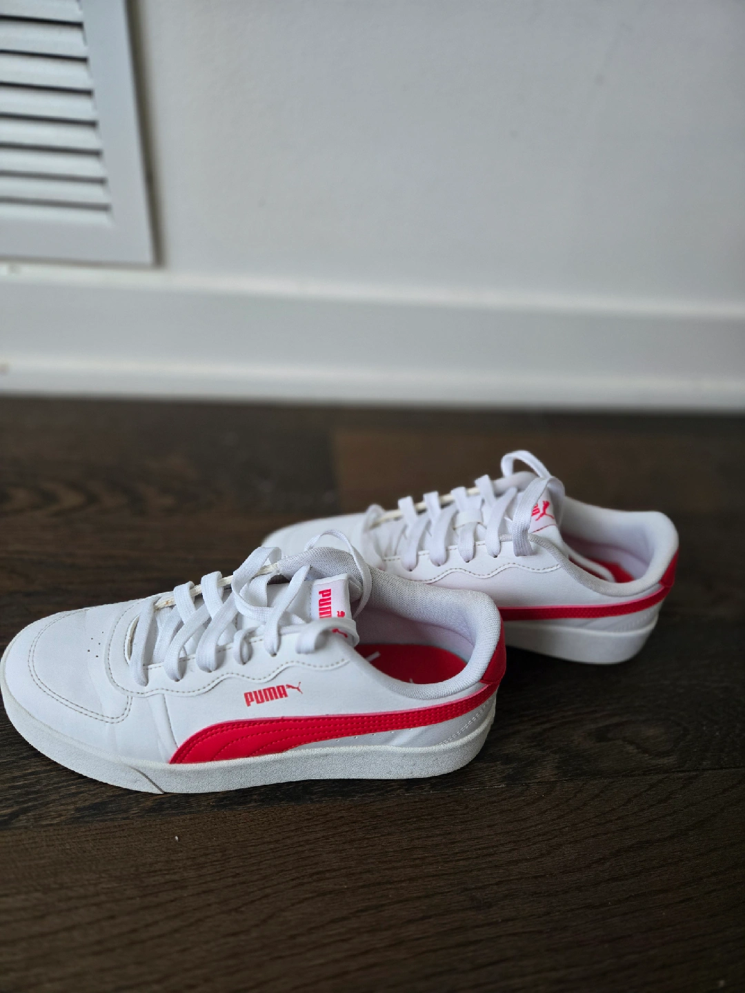 Selling a pair of Puma Rebound Layup Lo sneakers in white with red accents! These are in great shape and ready for a new home. They're a size 9 US / 40 EUR.