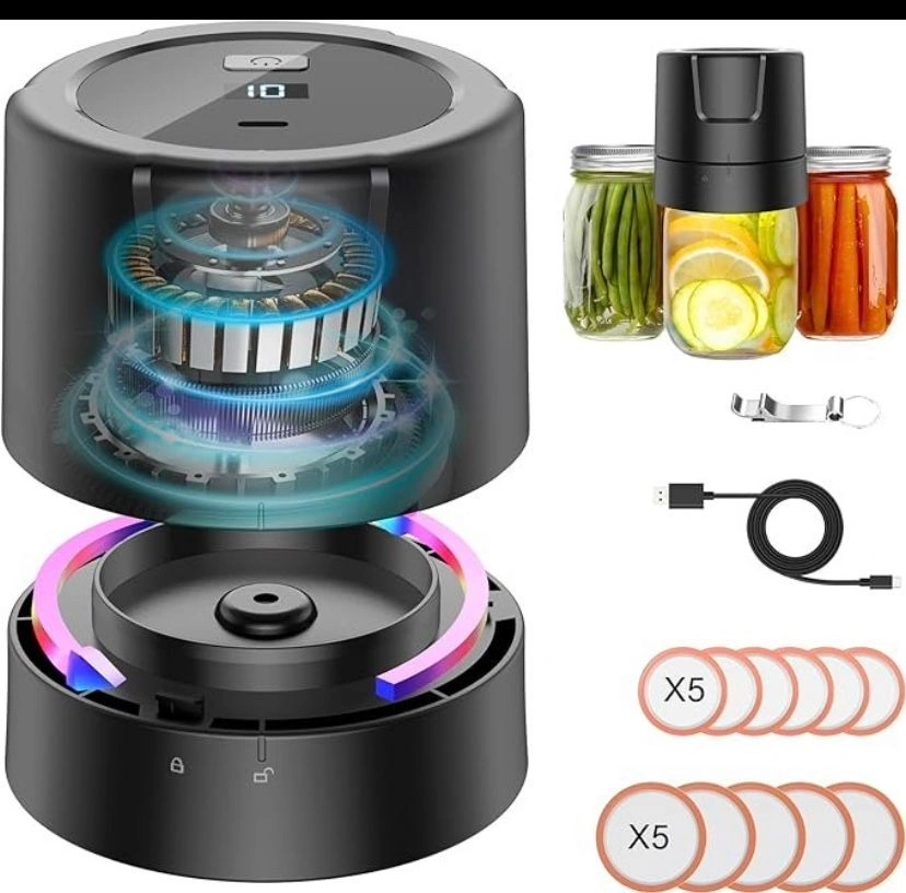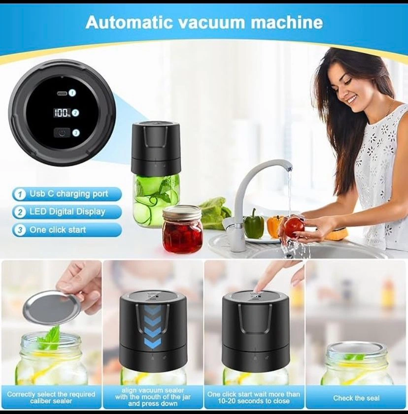 Easy to Use, Hands-Free Operation: Built-in LED display simplifies vacuum sealing—just click to start. Seals jars in 15-35 seconds, freeing hands from manual pumping.