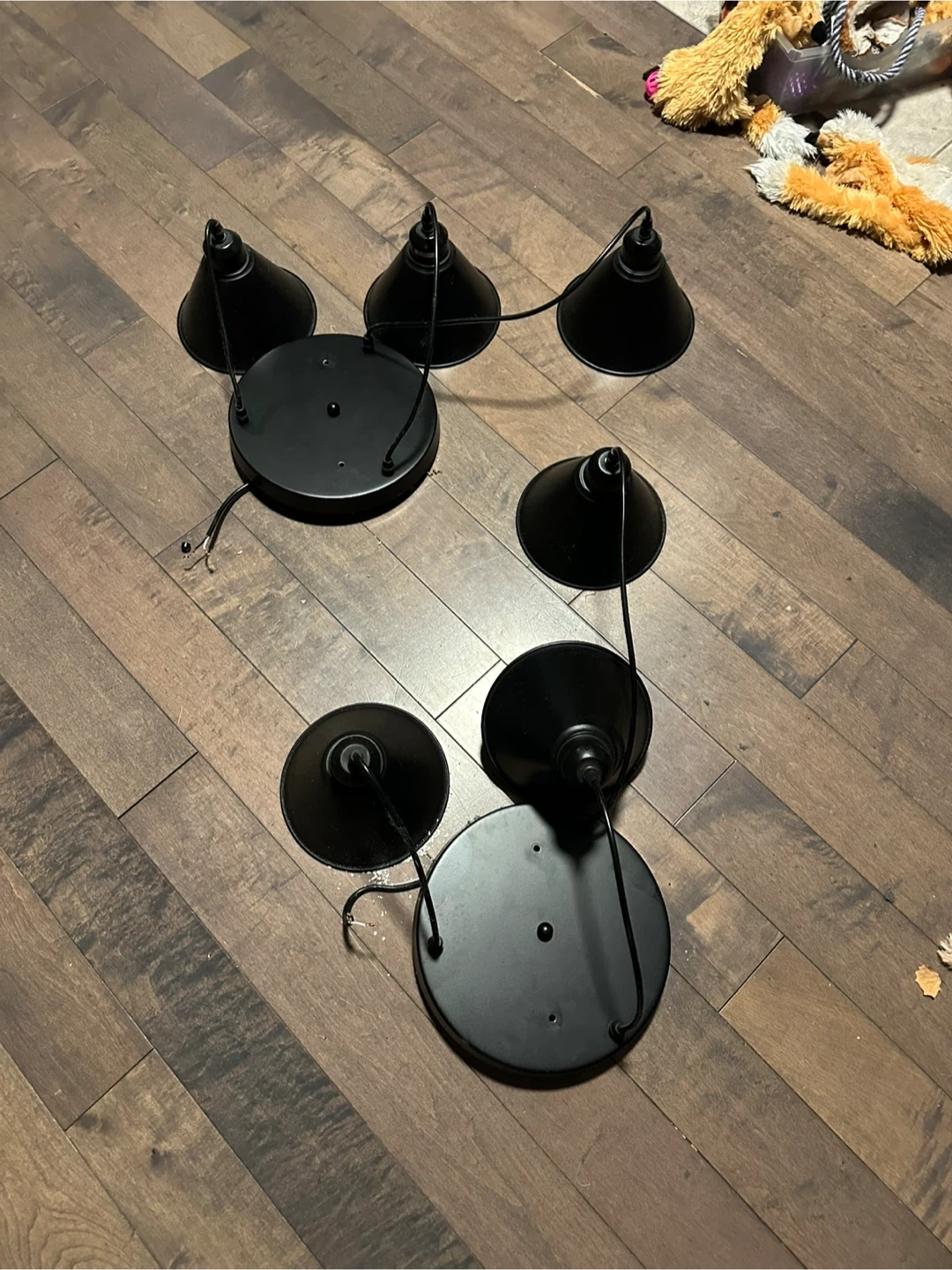 Selling a black pendant light fixture. It's in great condition and would look lovely in any room. Perfect for adding a touch of modern elegance to your space must take both