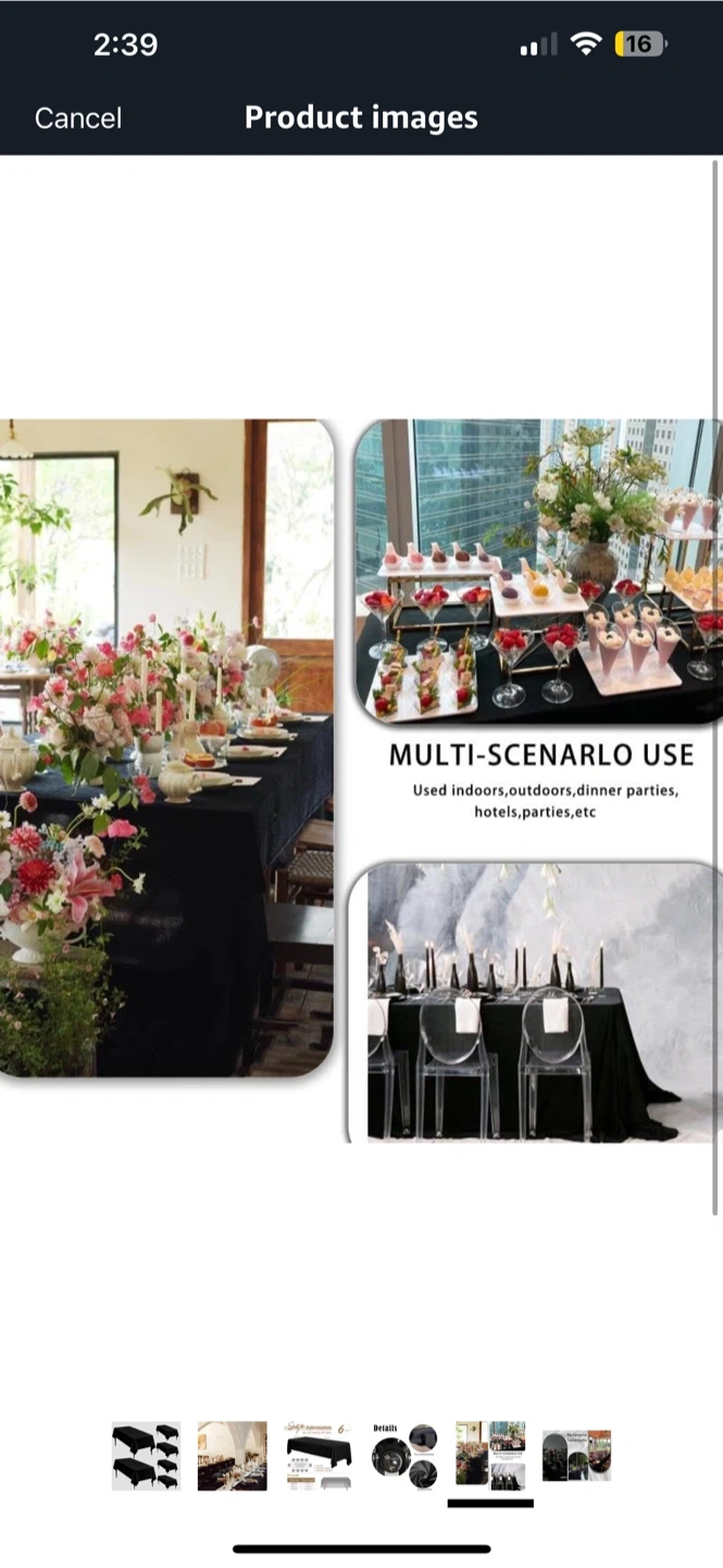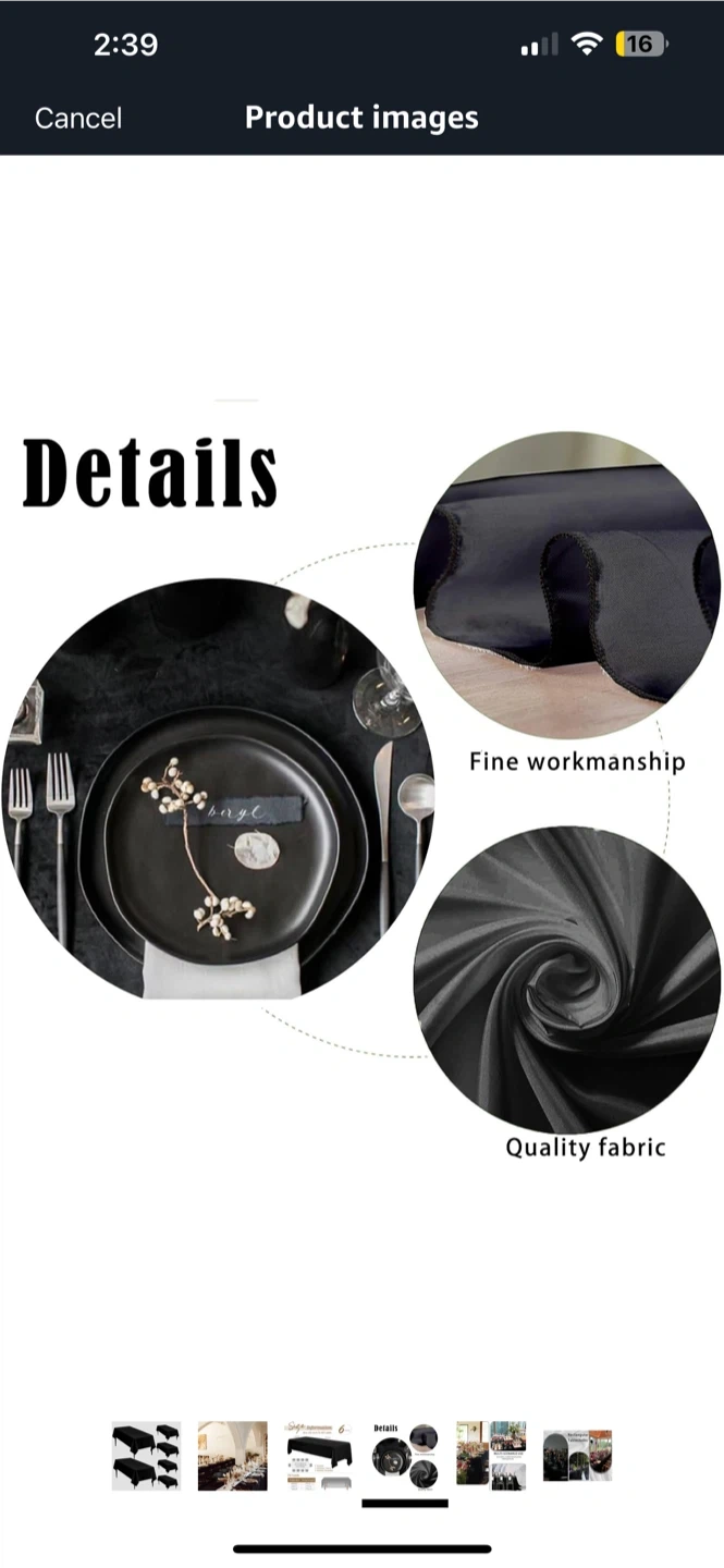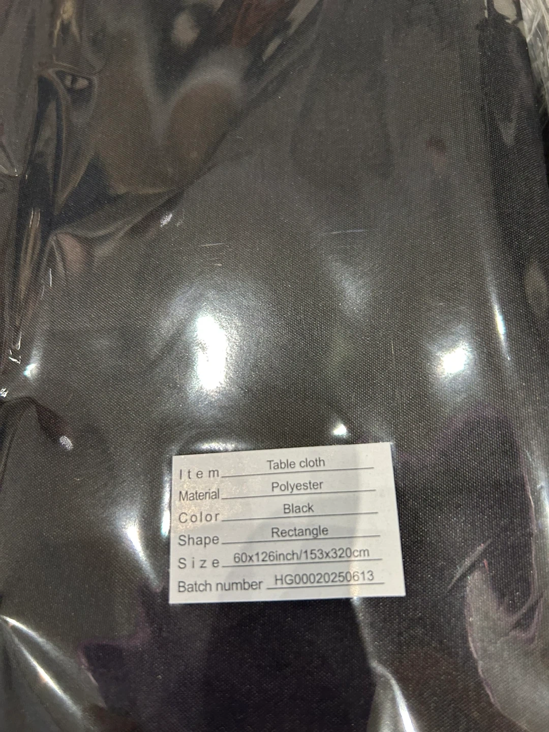 1000+Selling a brand new tablecloth, still in its original packaging! It's a sleek black colour and measures 60x126 inches (153x320cm). The material is polyester, and it's a rectangle shape. Perfect for indoor or outdoor use, dinner parties, hotels, and more 6 pack