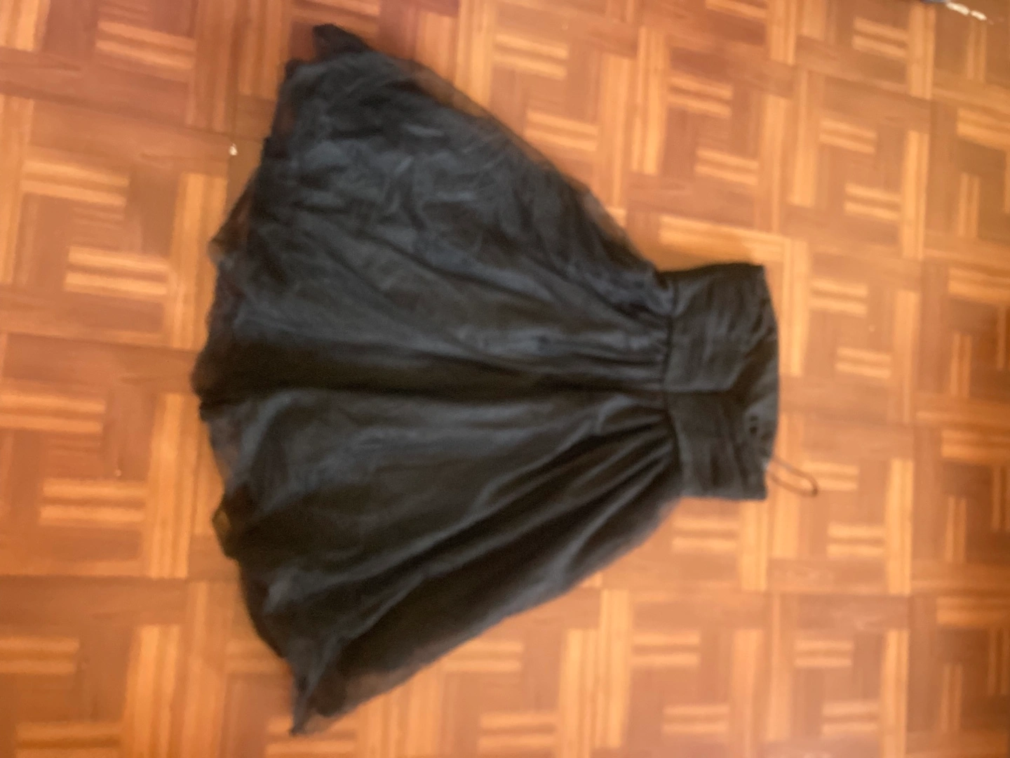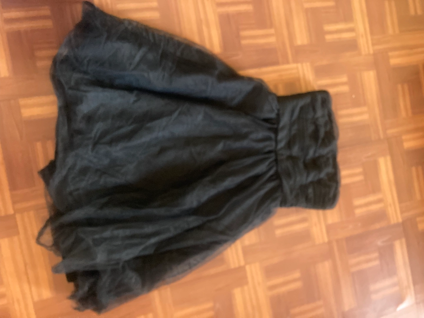 A cute black dress made of tulle material! It's in good condition. Perfect for a night out or a special occasion. Size 10