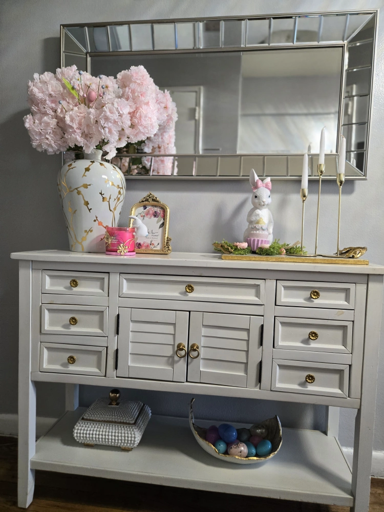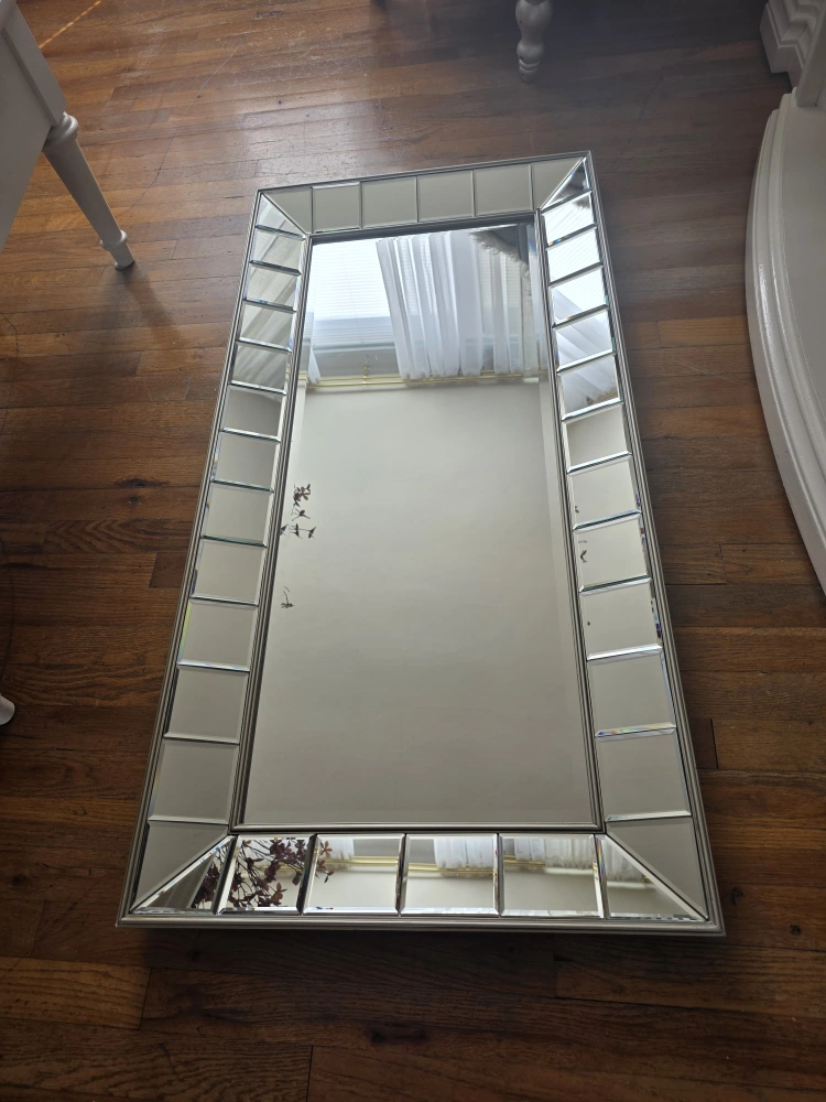 This is a rectangular wall mirror with a beveled edge. It would look great in an⁰ entryway or bathroom.