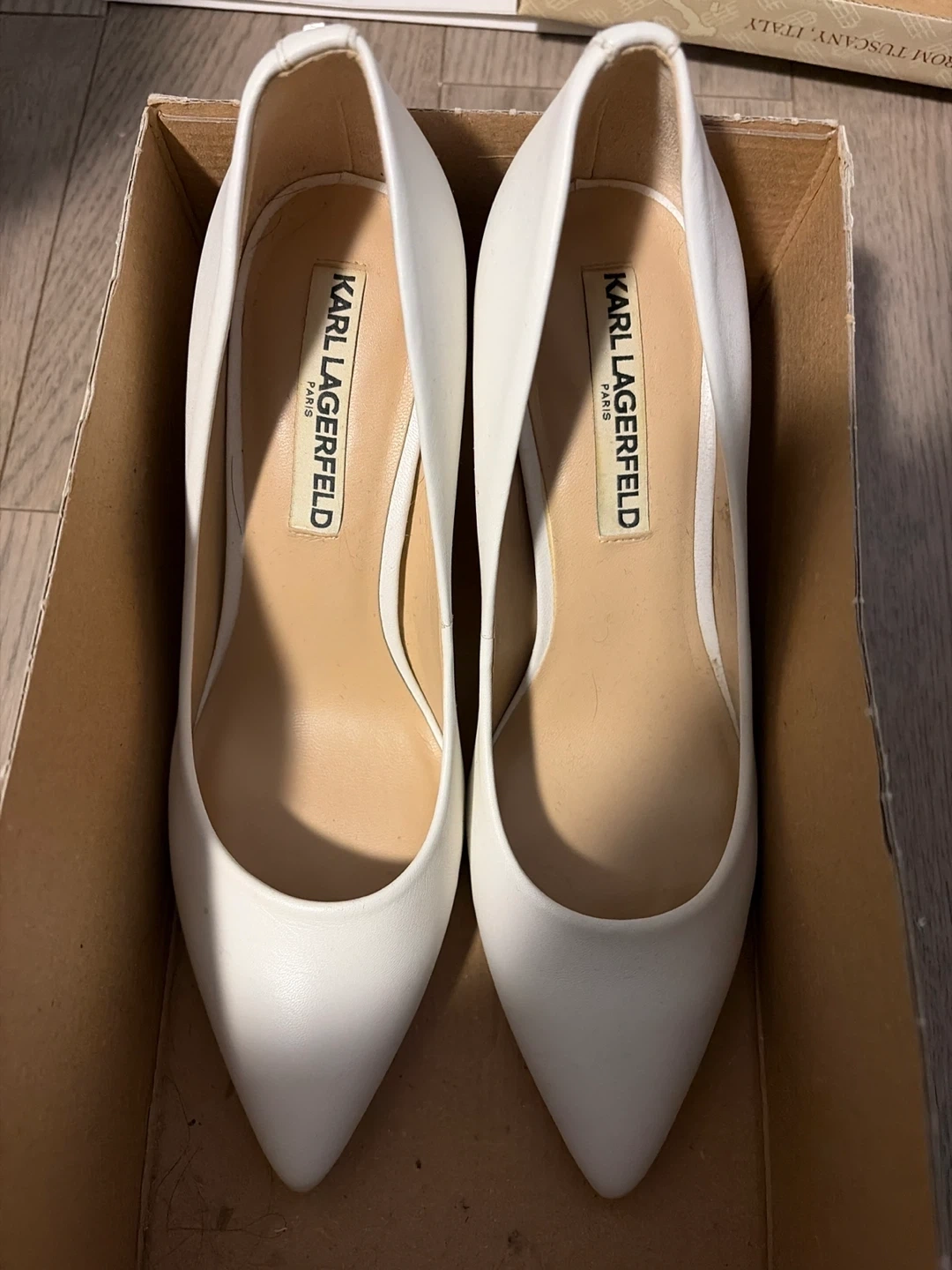 Selling a pair of Karl Lagerfeld white heels in size 6. Originally bought for $130. These heels are in great condition and ready for a new home