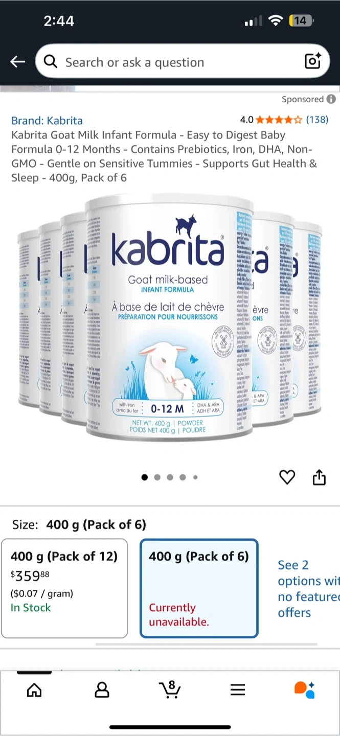 1000+I'm selling a brand new box of Kabrita Goat Milk Infant Formula! This box contains 6 x 400g cans. The manufacturing date is 2024 January 19. Perfect for little ones with sensitive tummies! Purchase the whole box for $85 or $20 a can
