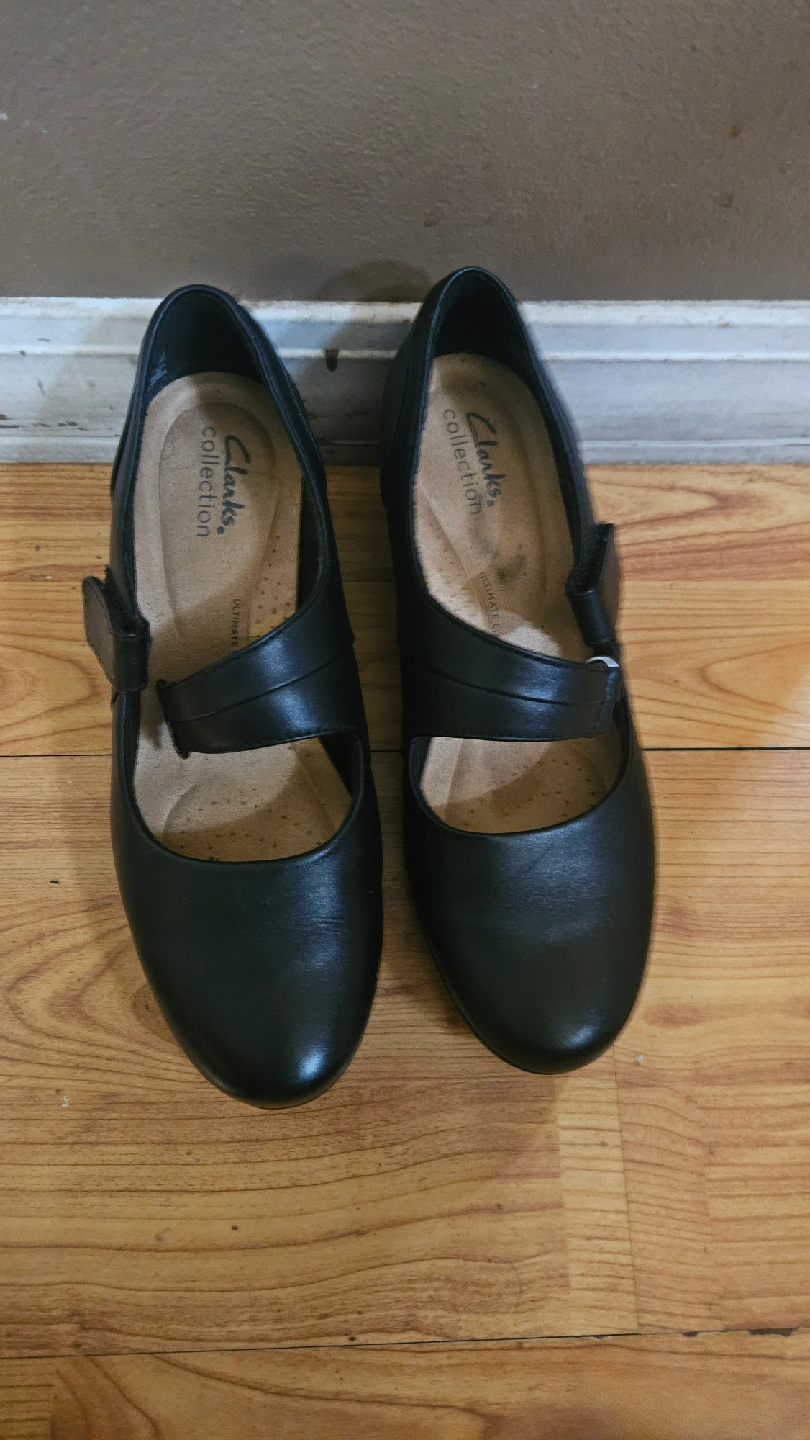 Classic Clarks Collection Mary Jane style shoes in black leather! They're in good condition and ready for a new home. Perfect for work or everyday wear
