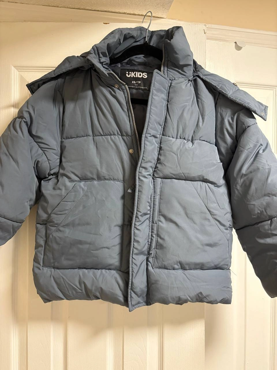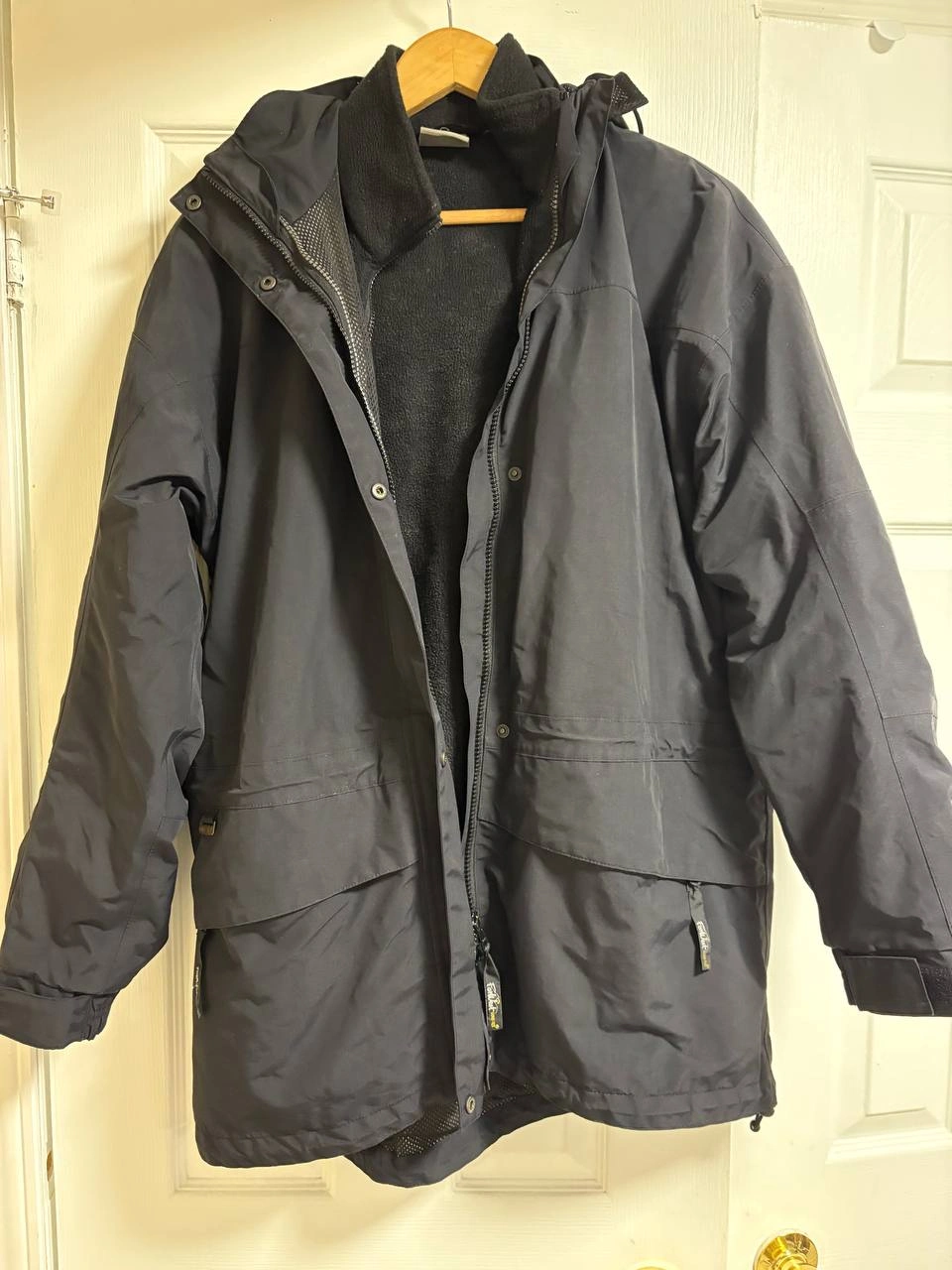 101I'm selling a daek blue winter jacket. It has a zipper and button closure. It's in good condition and ready for the cold weather! Original price : 190 $. L and XL