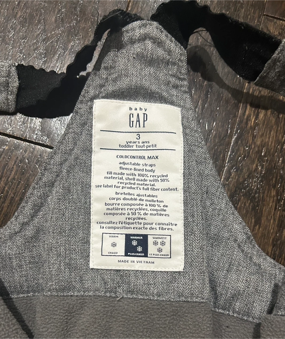 Selling a Baby Gap snow bib in size 3 years. It's in great condition and ready for some winter fun! The bib features adjustable straps and a fleece-lined body to keep your little one warm and cozy. Made with 100% recycled material, it's also an eco-friendly choice!