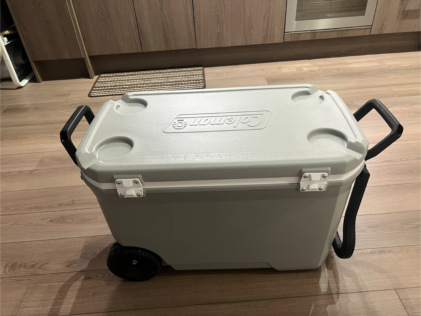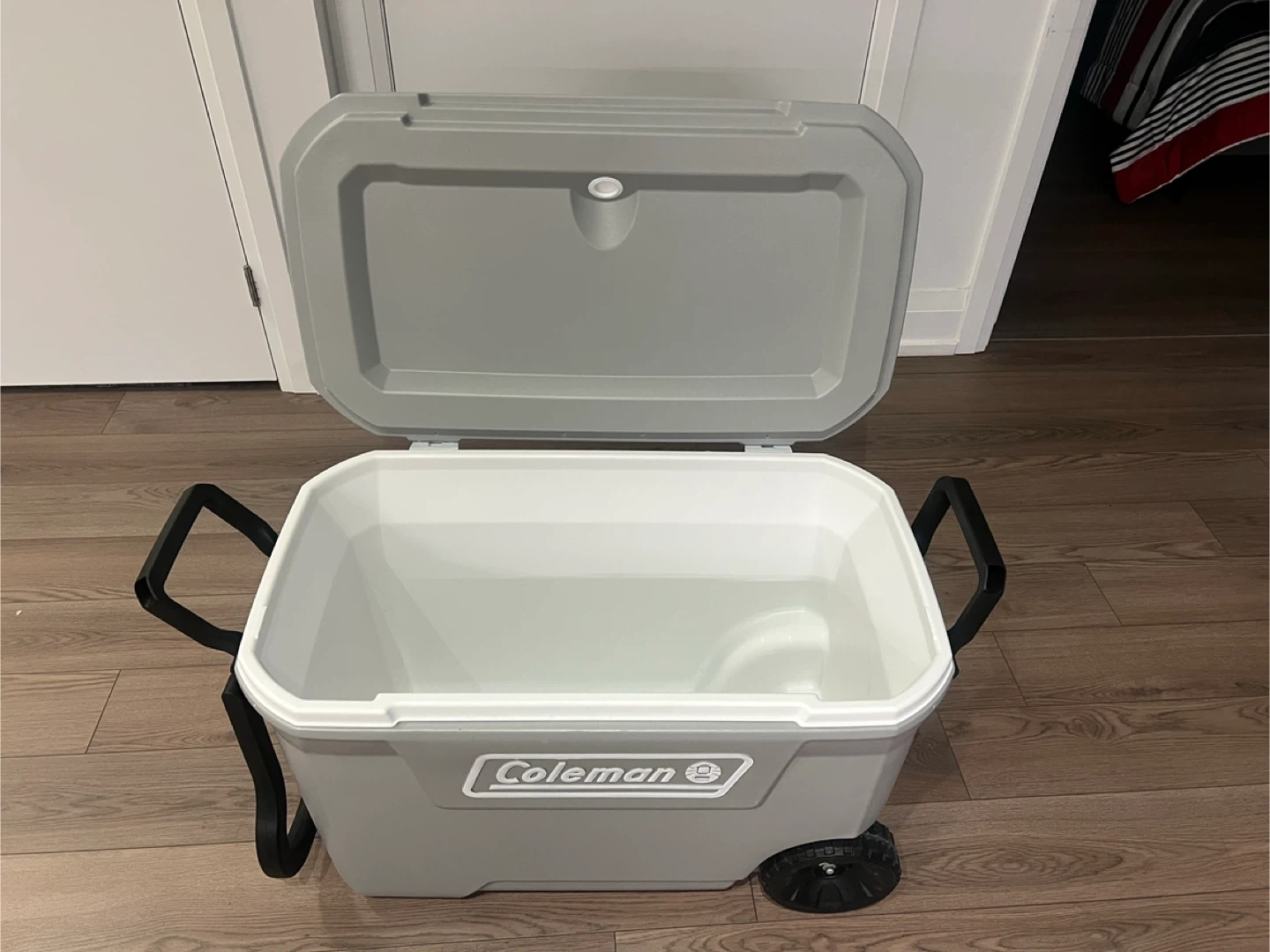 Selling a Coleman 52 quart rolling cooler! Beand new purchased never used.It's in great shape and ready to keep your drinks and snacks cold on the go. Perfect for camping, picnics, or backyard BBQs. It's easy to move around thanks to the wheels and handle.