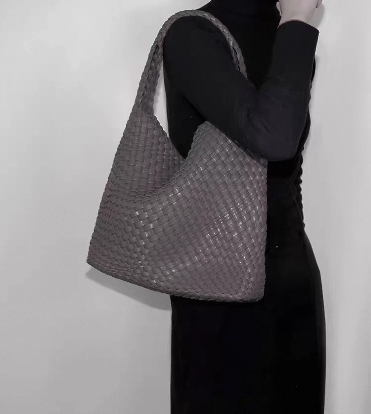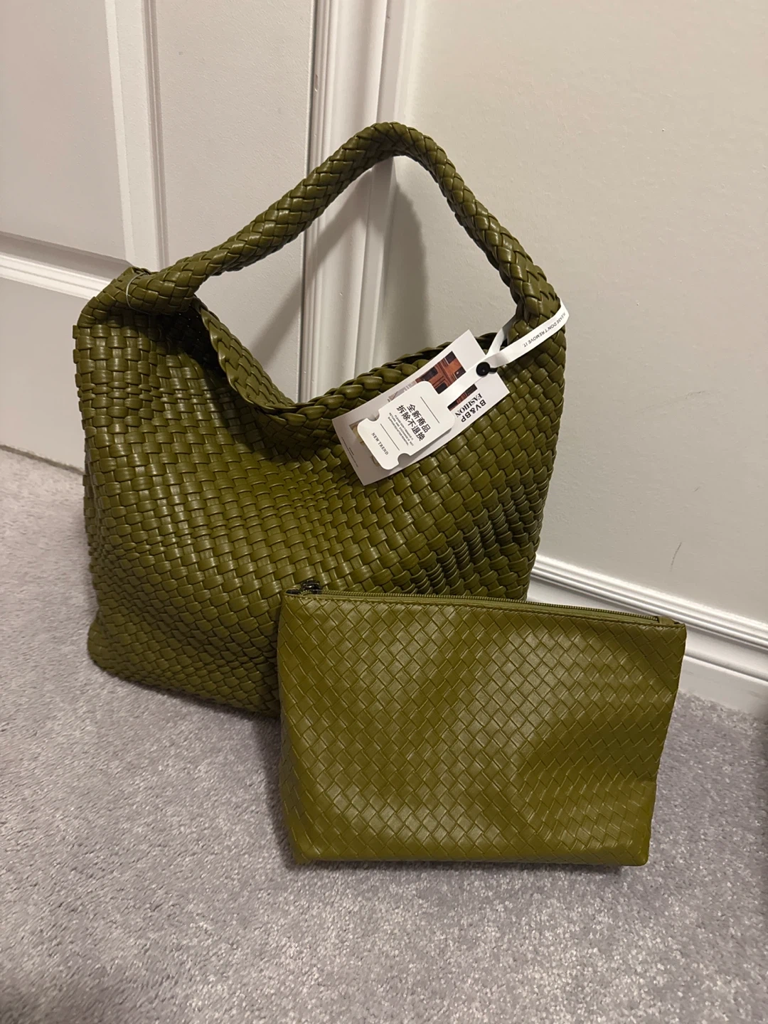 Woven Hobo Bag with Pouch - Olive Green 100% real leather