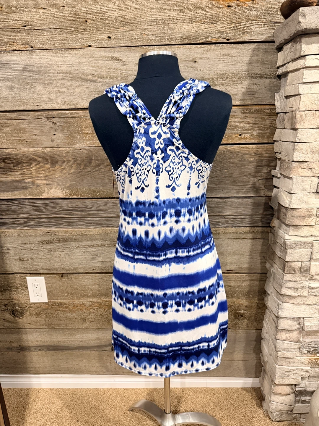 123Dotti Summer Dress – Size Small ☀️🌴 Super cute blue and white Dotti dress — perfect for warm summer days or your next tropical getaway! • Size: Small • Material: 96% Polyester, 4% Spandex – lightweight, soft, and slightly stretchy for a comfy fit • Condition: Fantastic – gently worn, no marks or damage • Style: Flattering fit that’s easy to dress up with wedges or keep casual with sandals • Perfect For: Beach vacations, patio dinners, summer parties, or everyday wear • Care: Easy to wash, quick-drying, and wrinkle-resistant – ideal for packing in a suitcase • From a pet- and smoke-free home in Park Ridge A fresh, breezy dress that looks adorable on and feels amazing in warm weather.