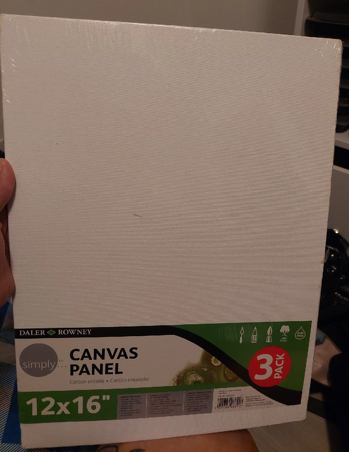 65Selling a pack of 3 Daler Rowney Simply Canvas Panels. Each canvas is 12x16 inches. They are ideal for oil and acrylic paints and are acid-free, made with 100% cotton