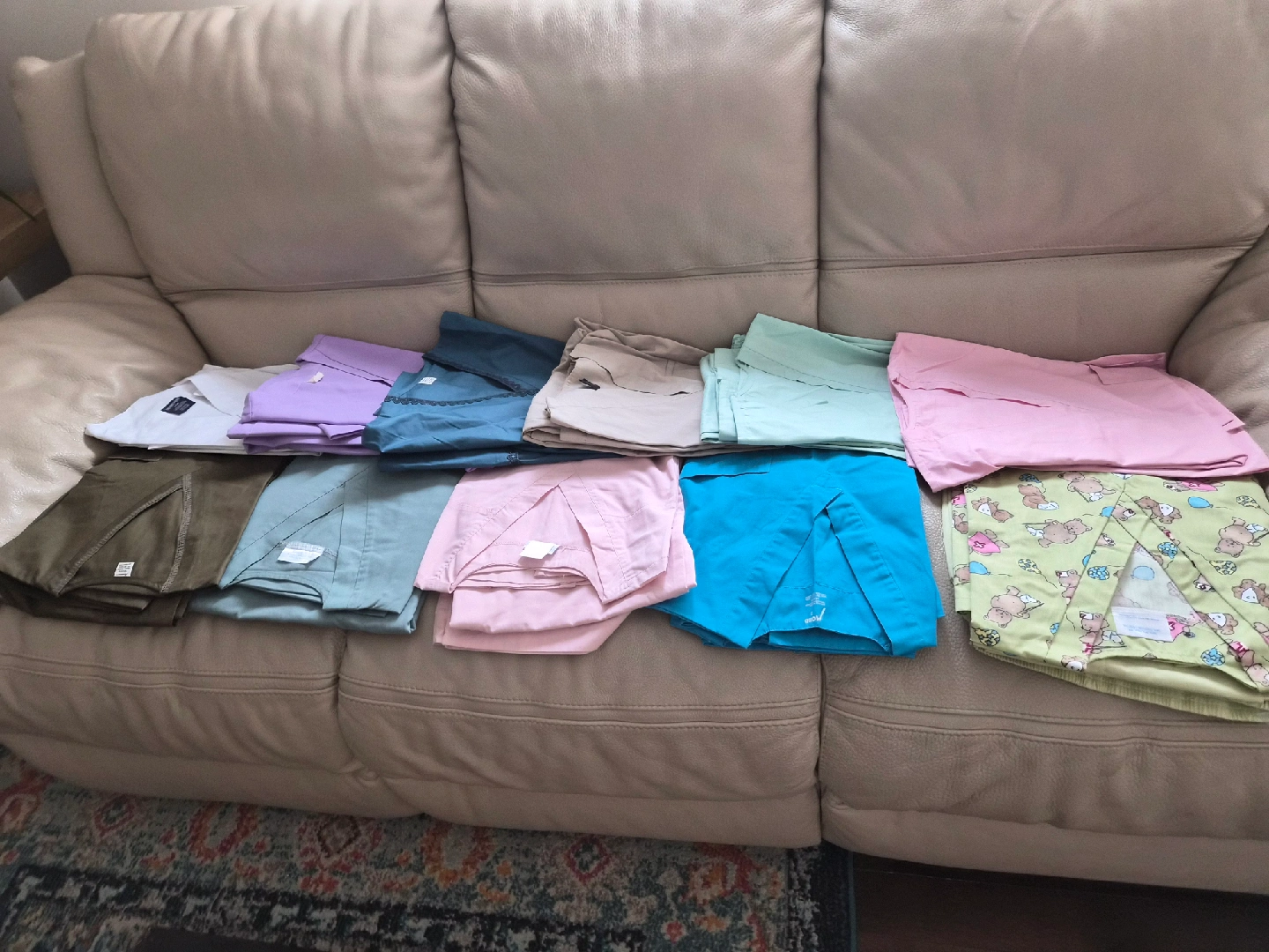 Selling a collection of scrub tops and bottoms in various colours and sizes! S, M & L. They're NEW. Perfect for healthcare professionals or students. Take a look and see if there's anything you like!